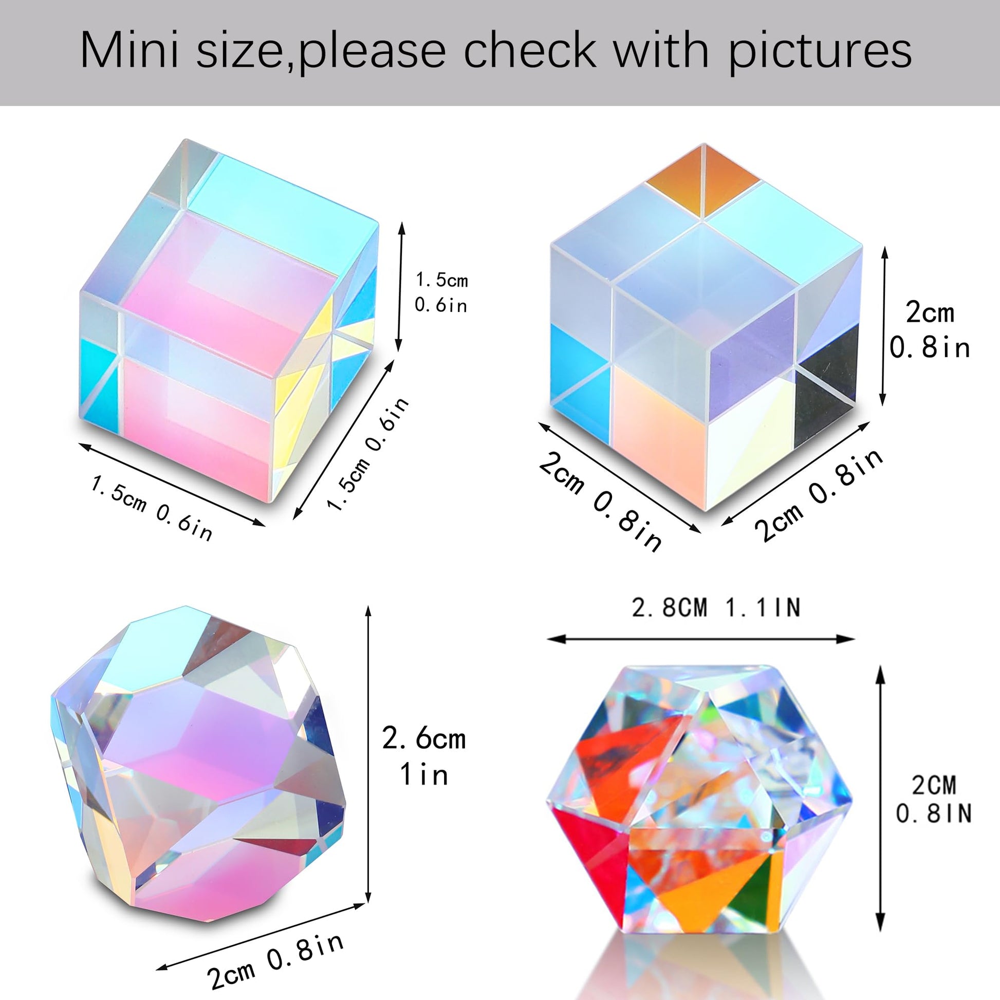 Crystal 4pcs Optical Glass X-cube Prism RGB Dispersion Prism for Teaching Light Spectrum Physics and Photo Photography Prism,15mm & 20mm