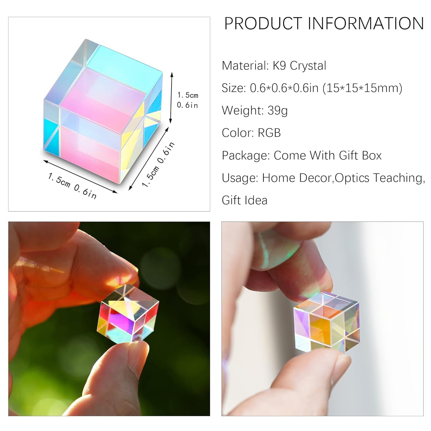 Hdcrystalgifts Mini K9 Crystal Glass Prism Cube,Optical Glass Rgb Dispersion Prism X-Cube For Physics Teaching Art Decor Photography Props,15 * 15 * 15Mm