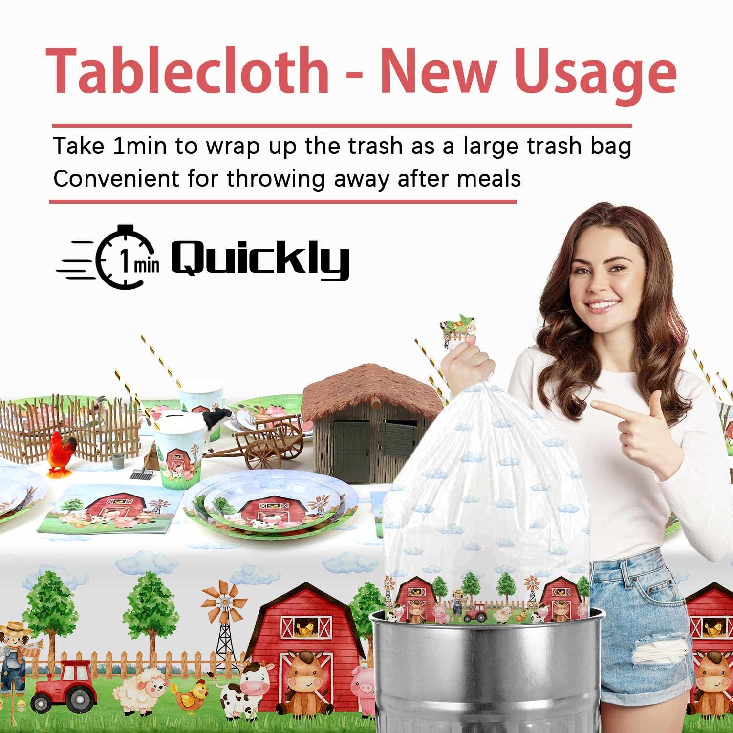 3 Pieces Farm Birthday Party Supplies Tablecloth, Farm Animal Birthday Party Supplies Disposable Plastic Table Cover, Barnyard Birthday Party Supplies Decorations for Baby Shower Boys Girls