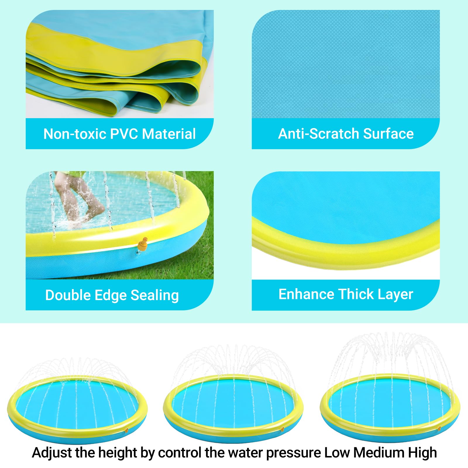 - Q: Can the splash pad withstand high water pressure? A: Yes, the splash pad features a widened reinforced edge sealing that helps it bear high water pressure, preventing cracking and leaks during use.