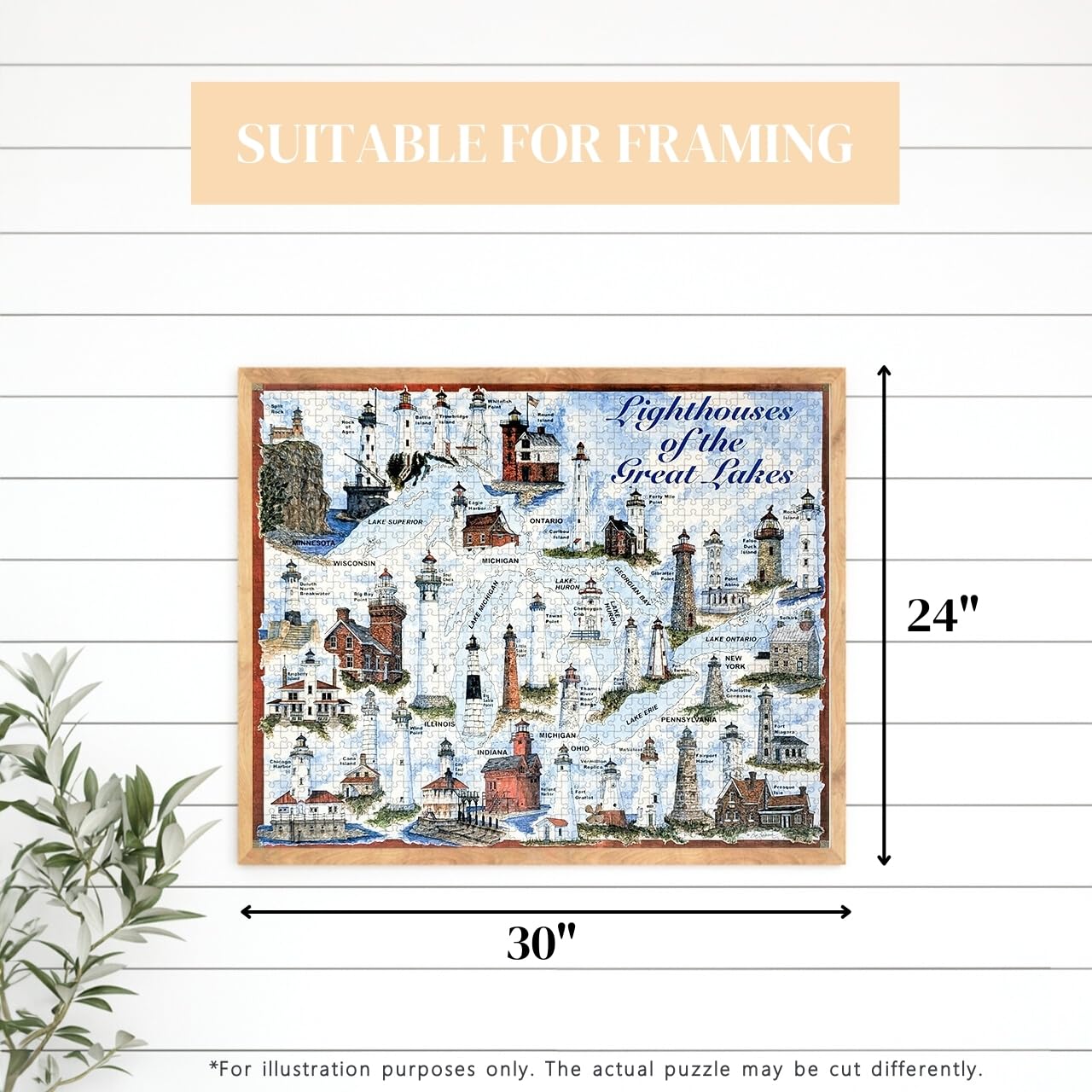 Heritage Puzzles Lighthouses Of The Great Lakes - 1000 Pieces - Size: 30'' X 24''