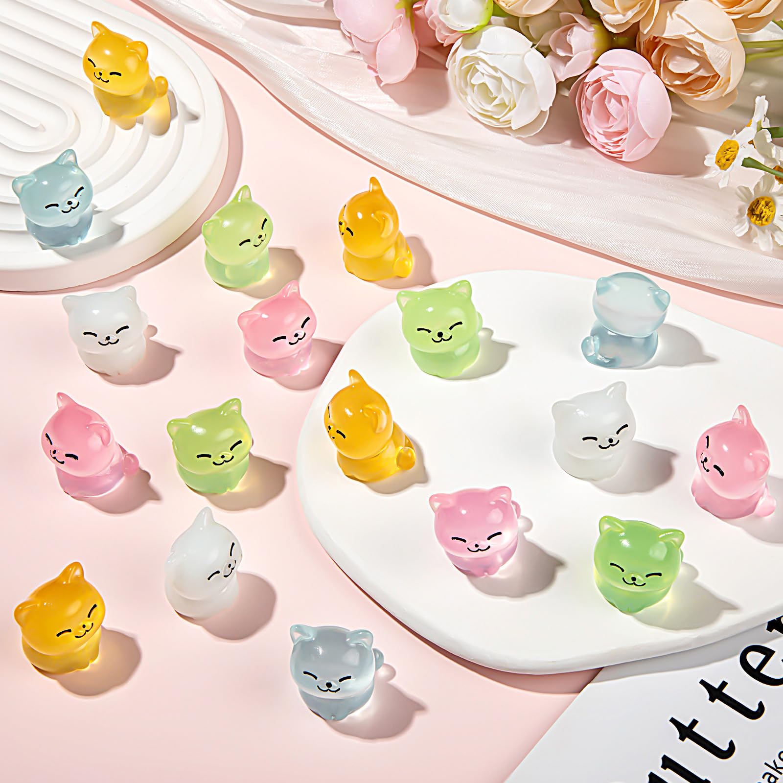 HFAYDZSW 40Pcs Luminous Mini Resin Cat, Miniature Cat, Glow in The Dark Tiny Cat Ornament for Garden Landscape Aquarium Dollhous