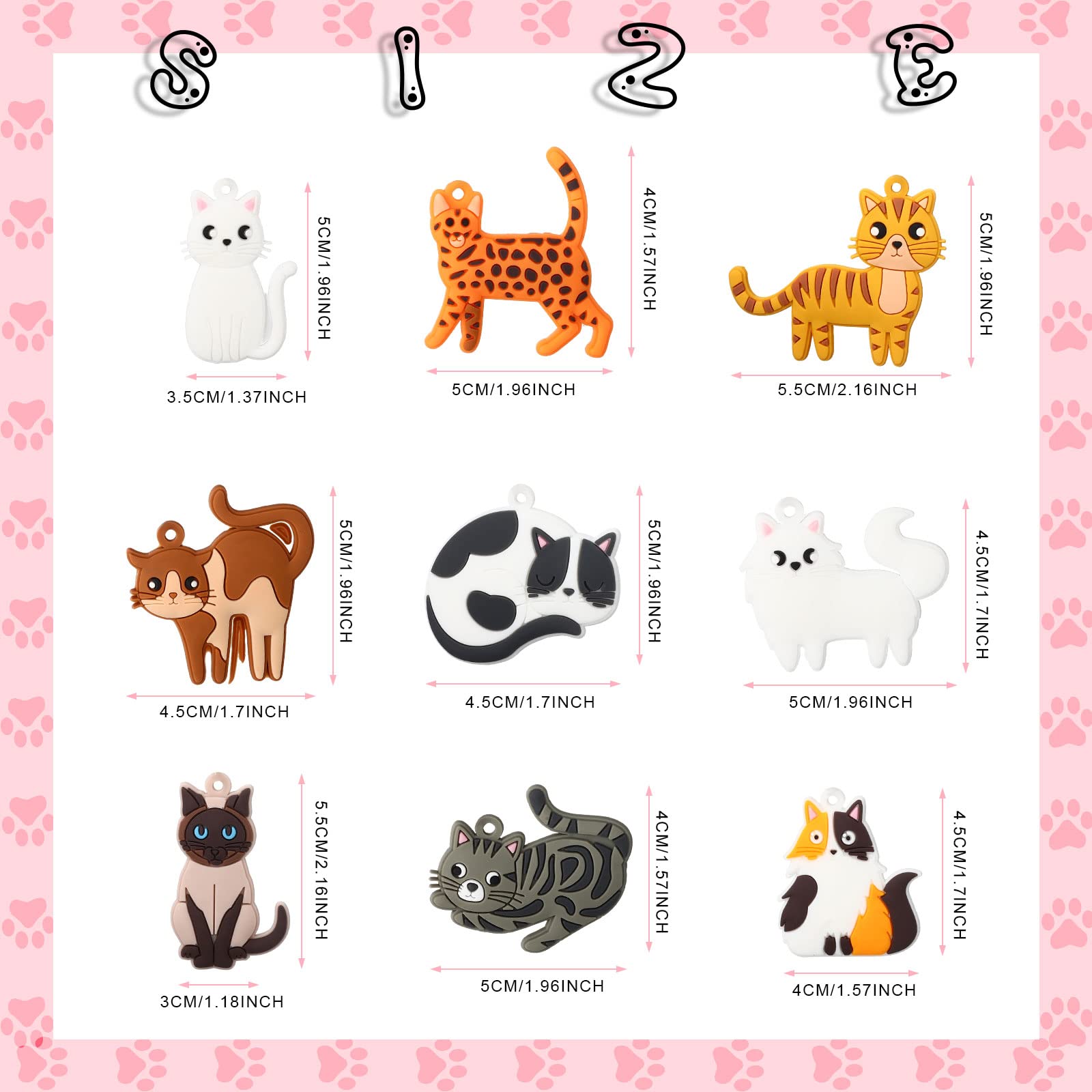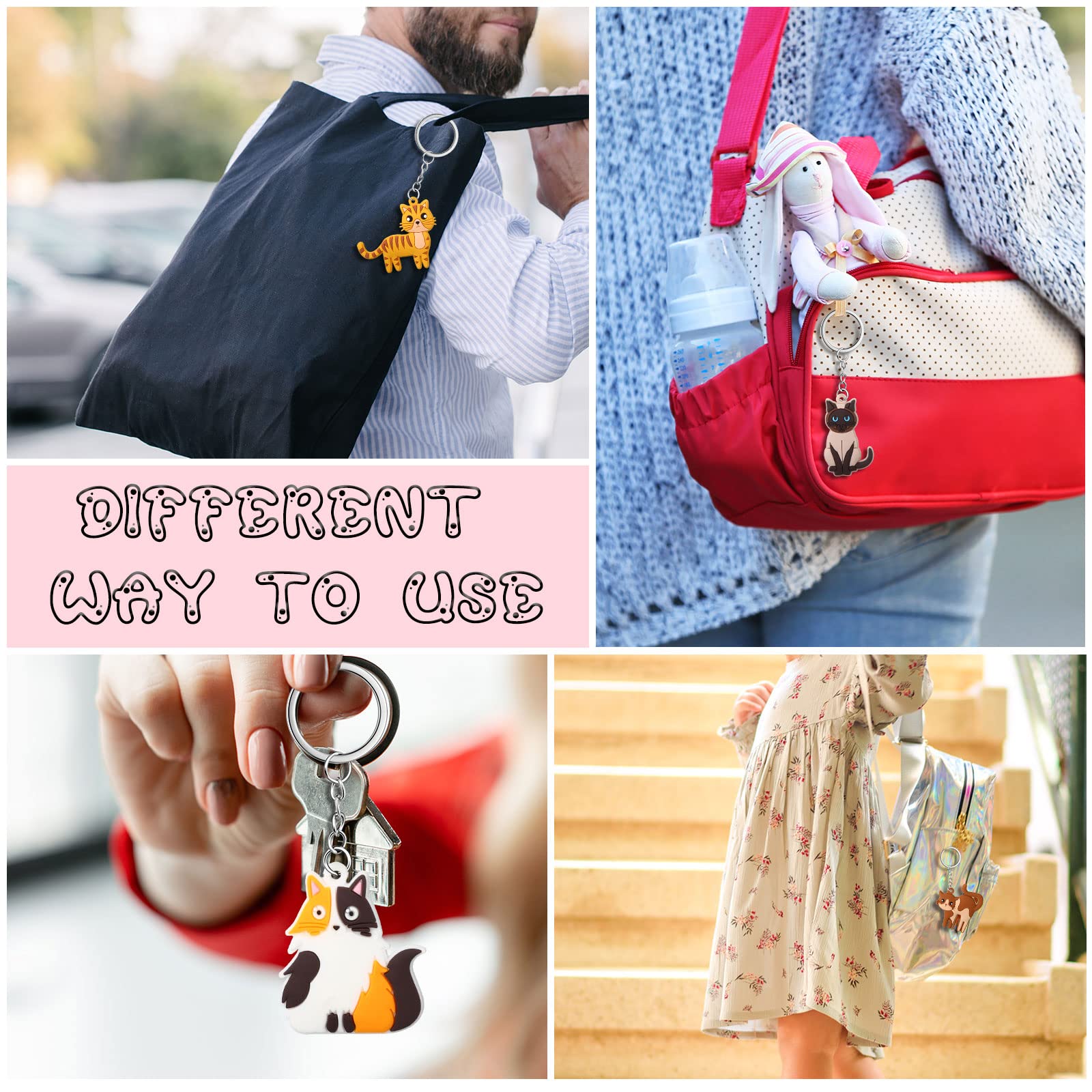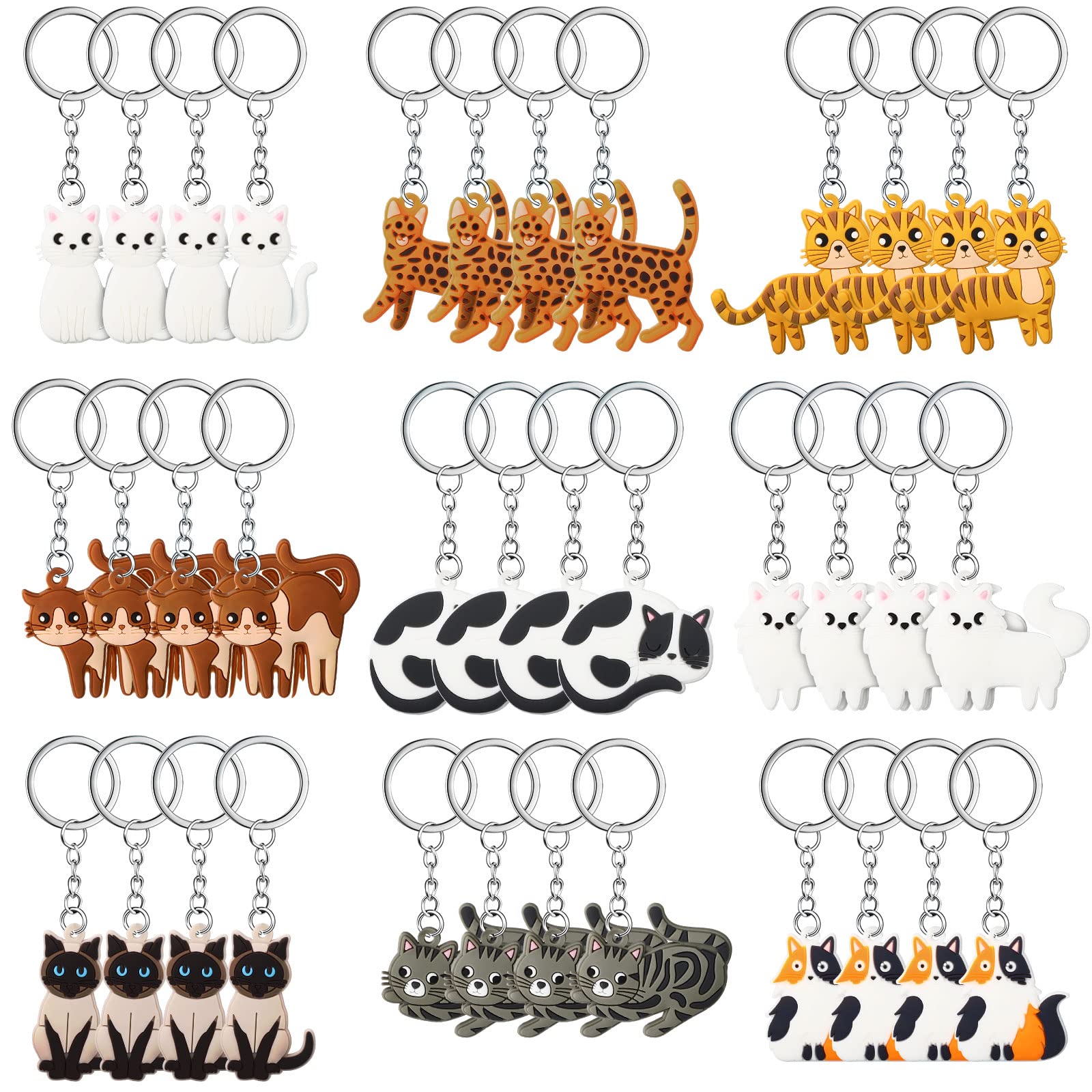 - Q: How many designs are included in the pack? A: The pack includes 36 cute cat keychains with 9 different designs, providing a variety of styles to meet your creative needs.