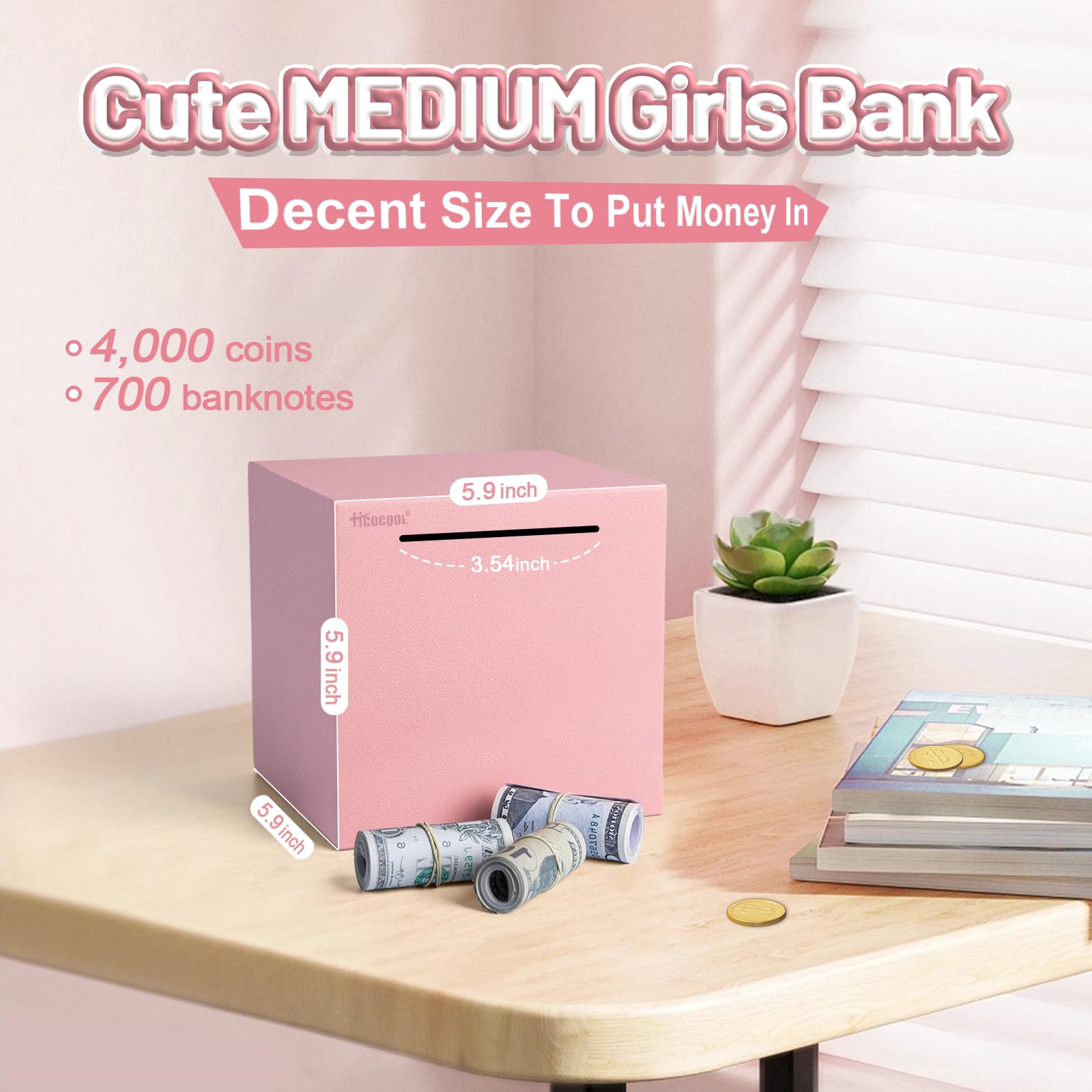 Hicocool Pink Stainless Steel Piggy Bank For Adults Kids, Must Break To Open Piggy Bank For Cash, Unbreakable Metal Money Saving Bank For Birthday Christmas New Year Gift (5.9 Inch)