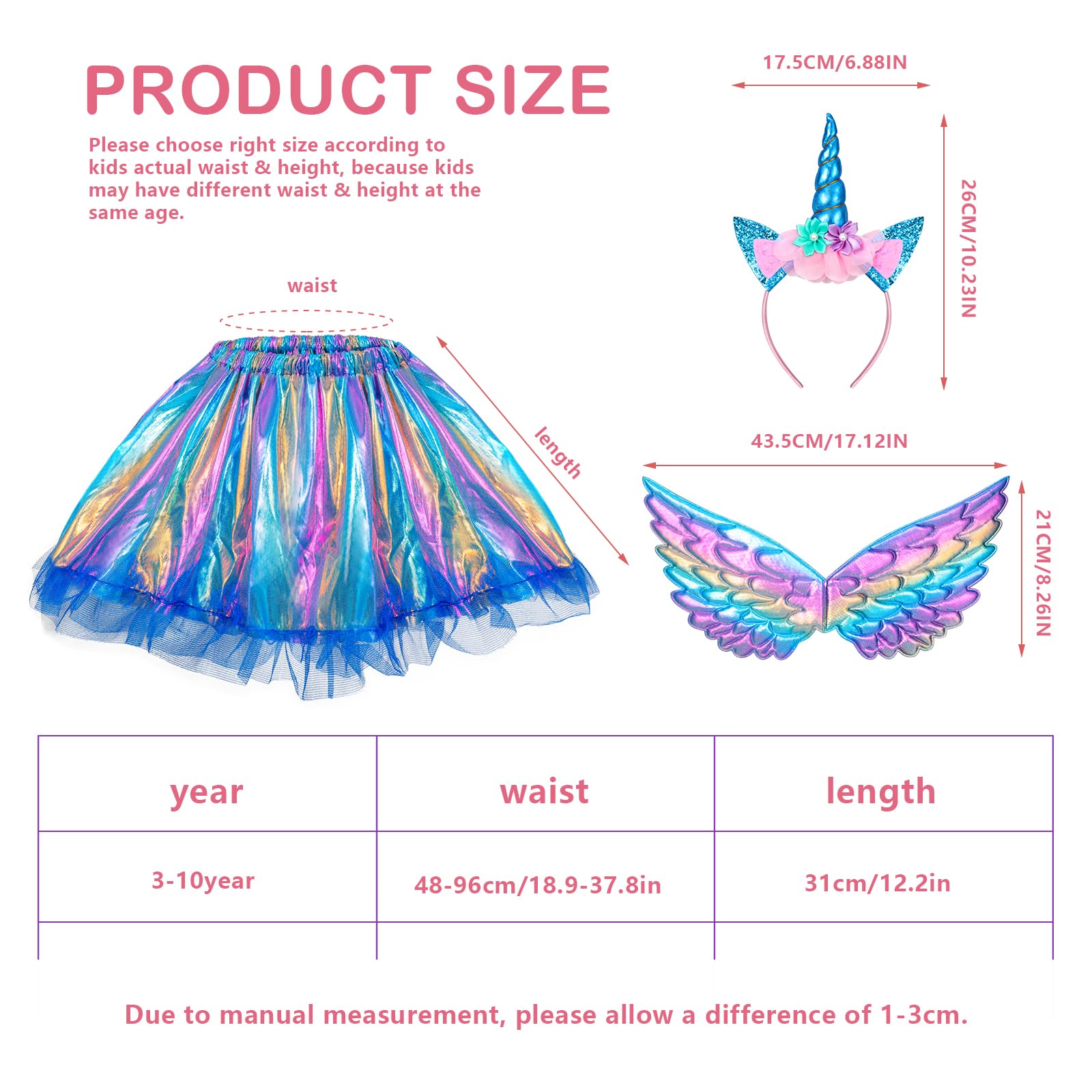 Hifot Unicorn Costume Kids Tutu Skirt For Girls With Unicorn Wings Headband Unicorn Dress For Birthday Outfit Halloween