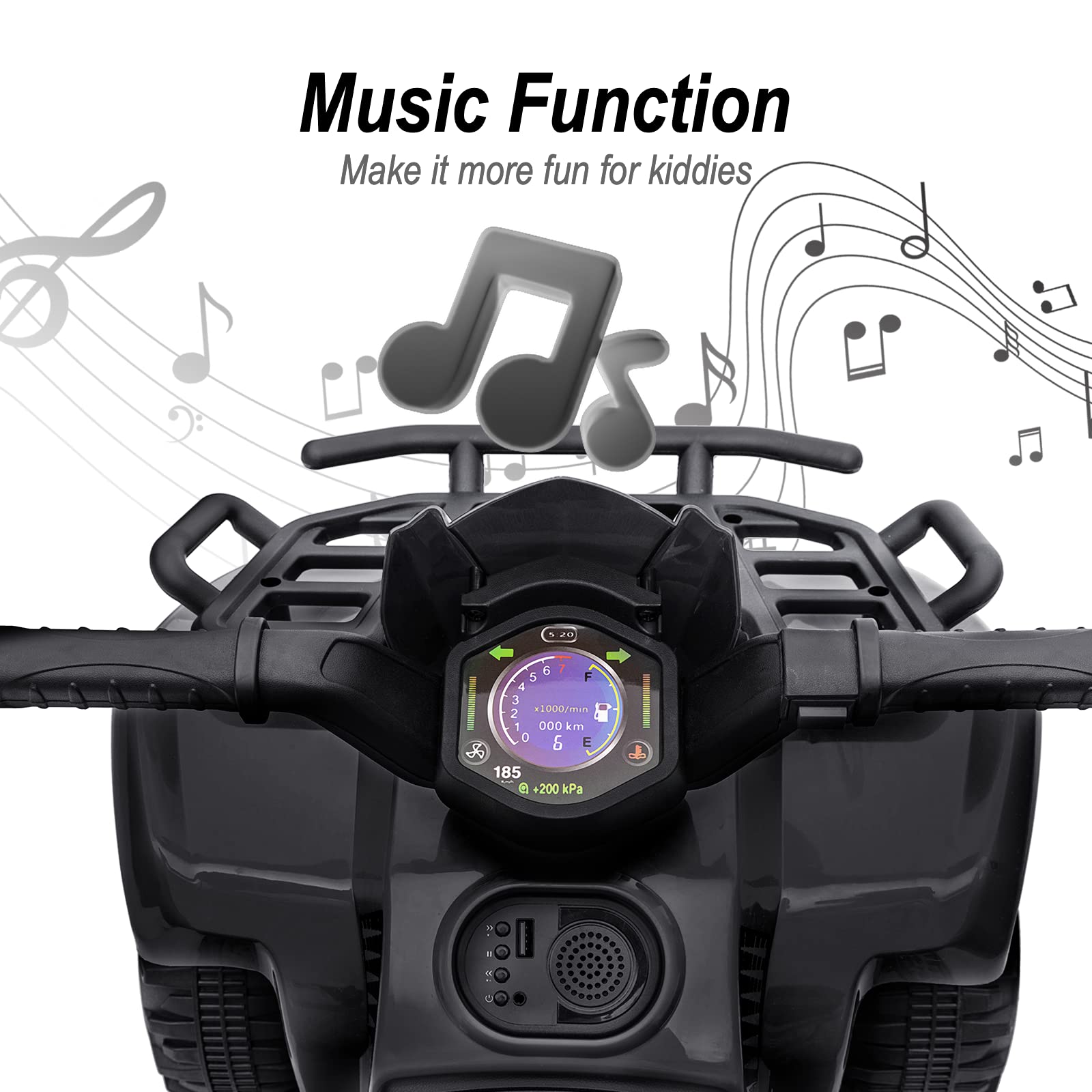 Hikiddo Kids Atv 4 Wheeler, 6V Ride-On Toy For Toddlers 1-3 Boys & Girls With Music, Forward & Reverse - Black