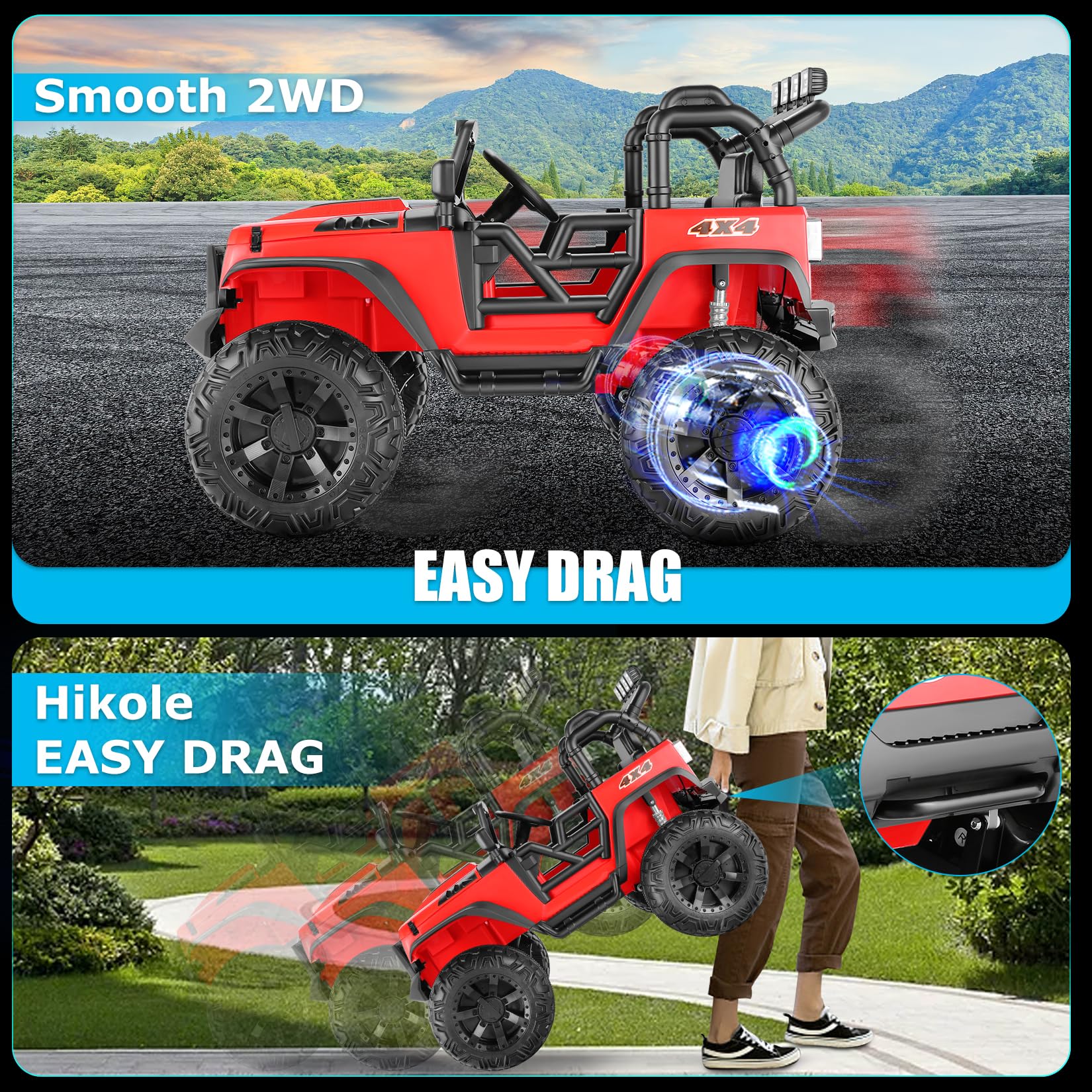 Hikole 2 Seater Ride on Car with Remote Control - 24V Battery Powered Electric Truck for Kids, 2x200W Strong Motor, Spring Suspe