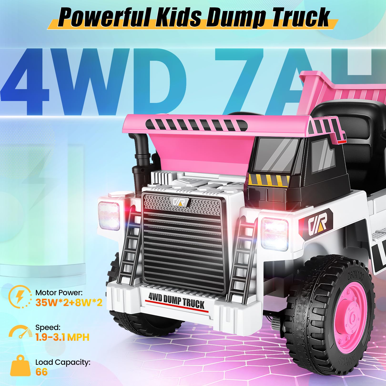 Hikole Ride on Truck for Kids, 12V 4WD Electric Dump Truck with Electric Dump Bed and Extra Shovel, Ride On Toys Power Car Wheel