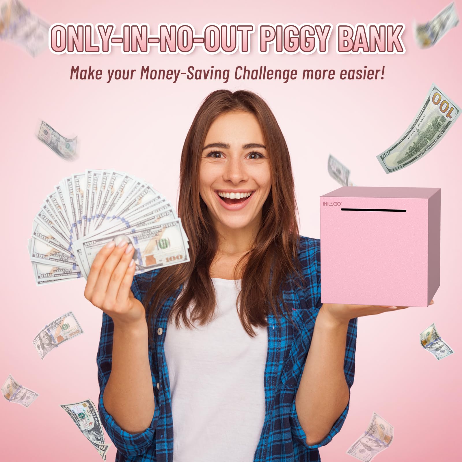 View compareHizgo Adults Pink Piggy Bank, Stainless Steel Piggy Bank For Adults/Kids Must Break To Open, Unopenable Money Saving Box(5.9-Inch, Pink)