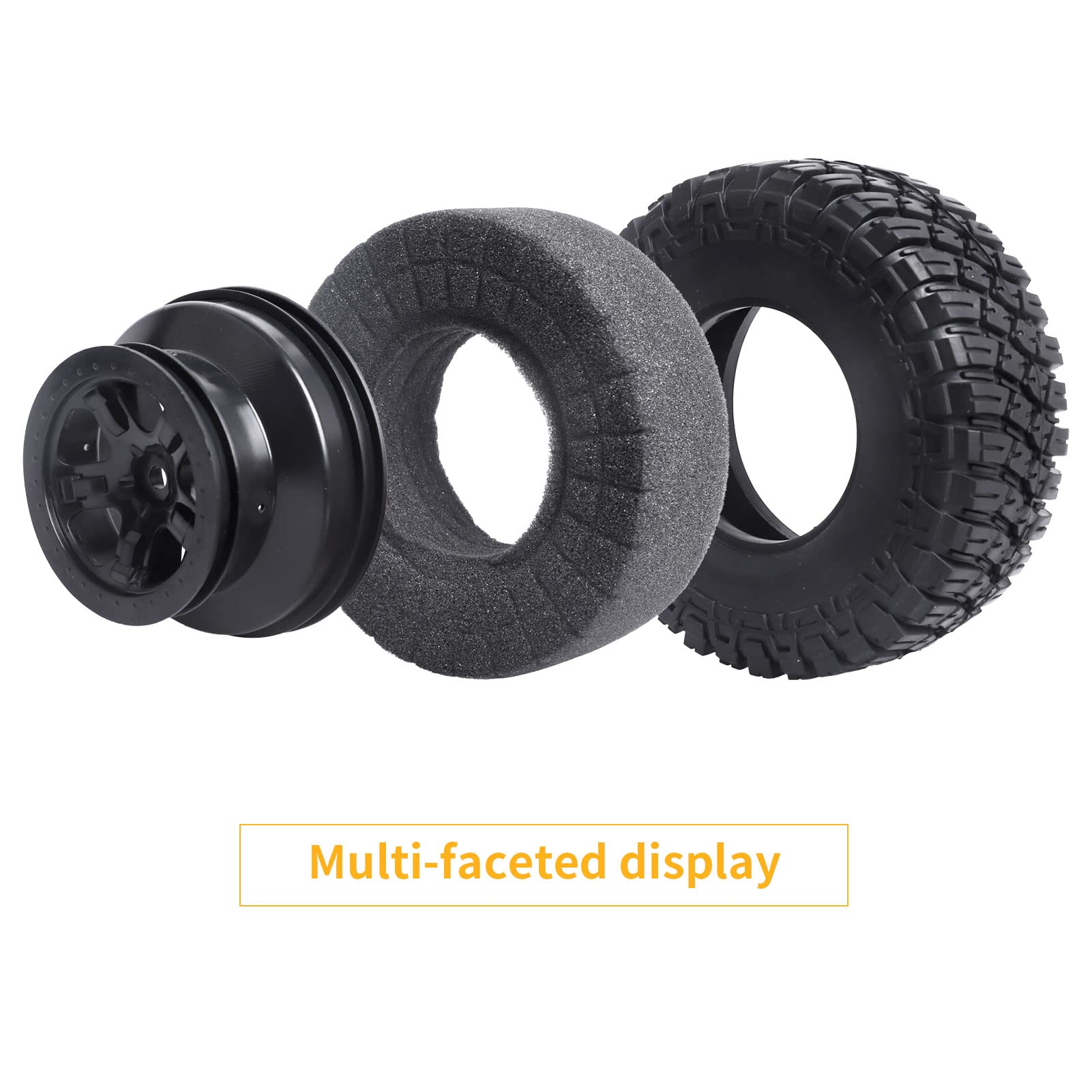 - Q: How do I install these tires on my RC vehicle? A: Installation is straightforward; simply mount the tires onto the plastic wheels and secure them using the included small cross wrench for the wheel locknuts.