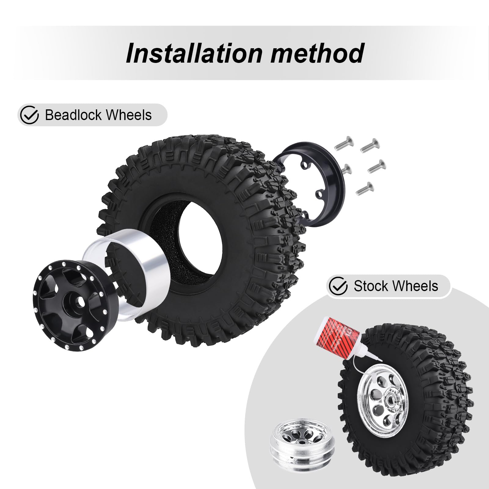 HobbyPark 1.0 Tires SCX24 Tires Soft Rubber for 1/18 TRX4M Axial SCX24 Gladiator Bronco C10 JLU Deadbolt B17 Betty 1/18 1/24 RC