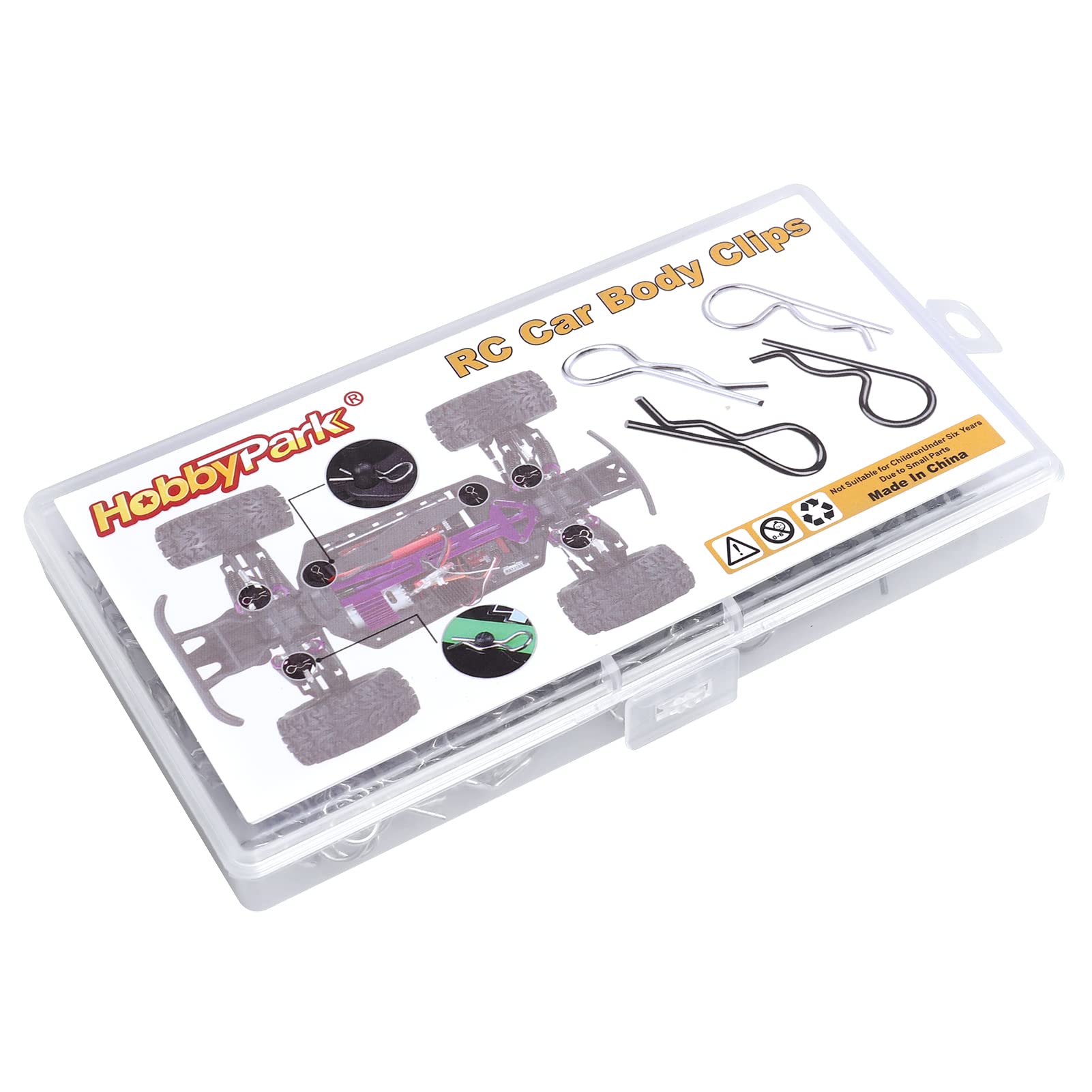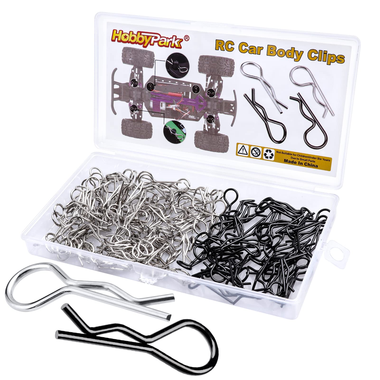 View compareHobbyPark 150 Pieces Universal Bent RC Body Clips Car Clips Silver & Black R Clips for All 1/10 1/12 Scale Redcat HPI Tamiya HSP