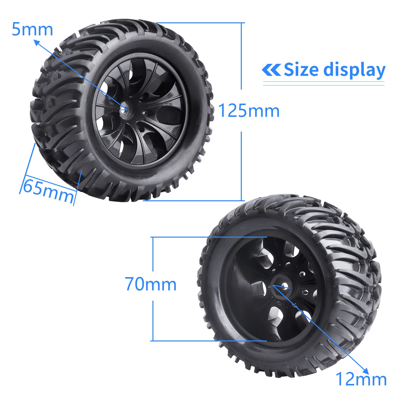 View compareHobbypark 4pcs Height 4.92'' (125mm) 12mm Hex RC Truck Wheels and Tires Set for Traxxas Redcat 1/10 Scale RC Truck Monster fit 2