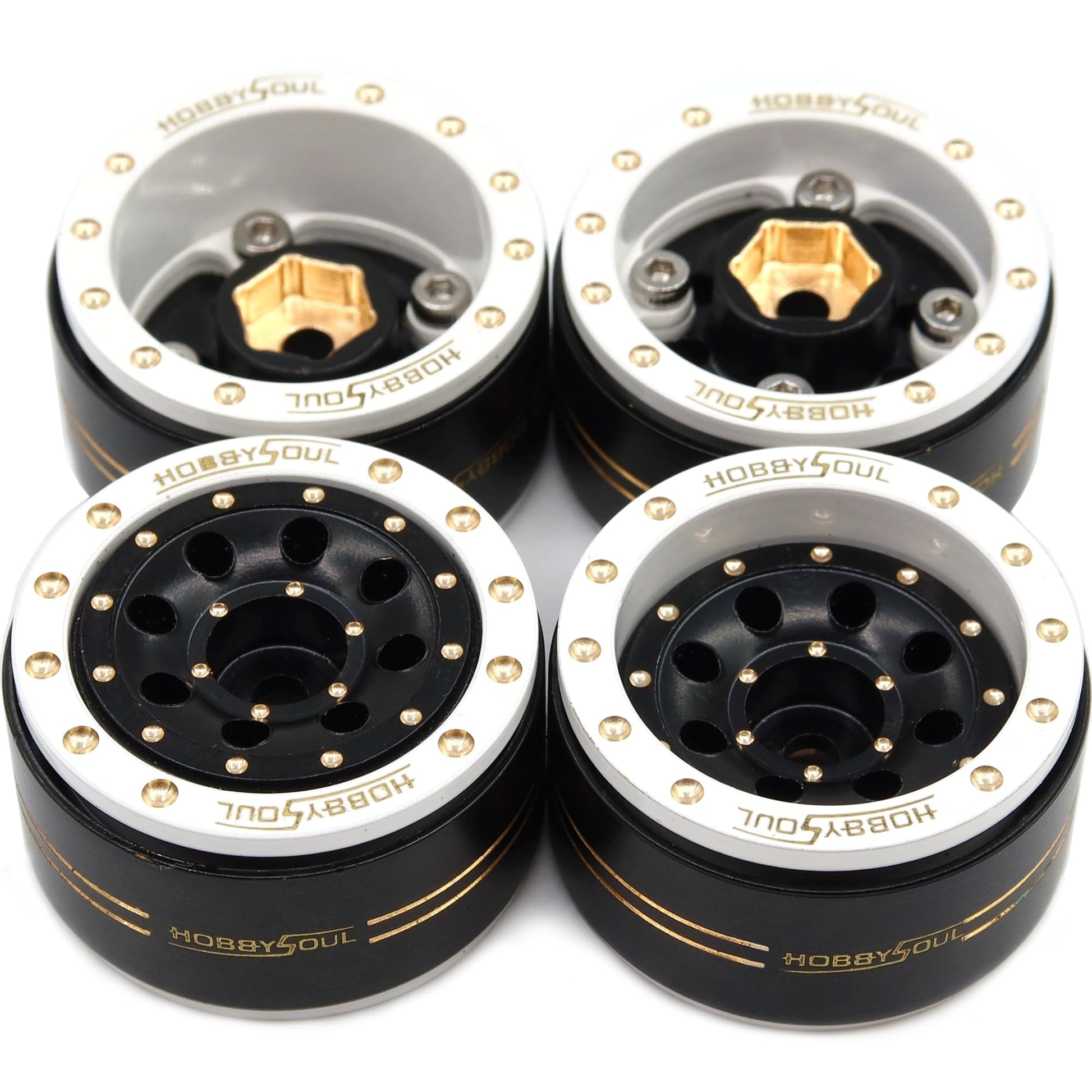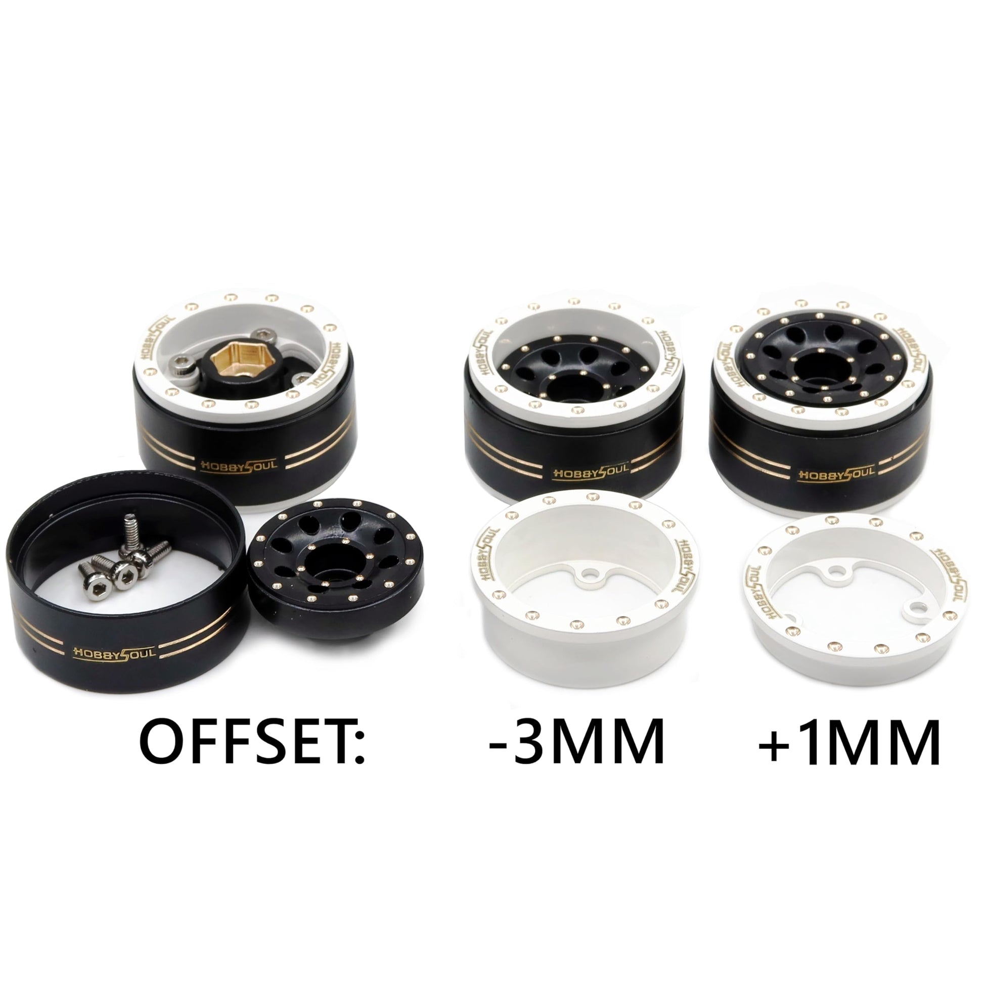Hobbysoul Brass 1.0 Beadlock Wheels Adjustable Offset Rims Weight 44G/Rim For Rc Micro Crawler 1/18 Trx4M 1/24 Axial Scx24, (4-P