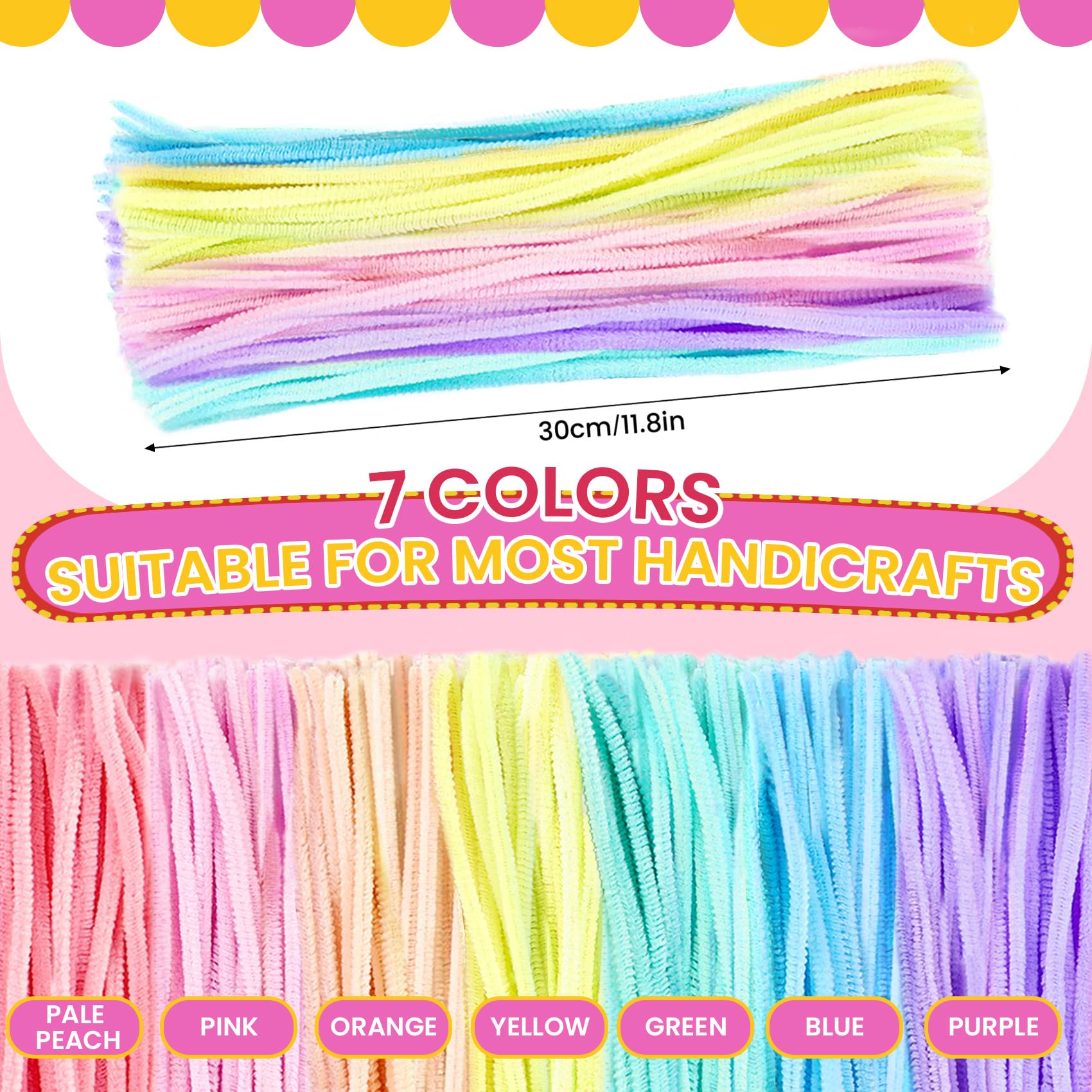 HOIRIX 300Pcs Pipe Cleaners Chenille Stem,Pipe Cleaner Crafts,Craft Supplies Bulk for DIY Arts Crafts Project,7Colors (Macaron)