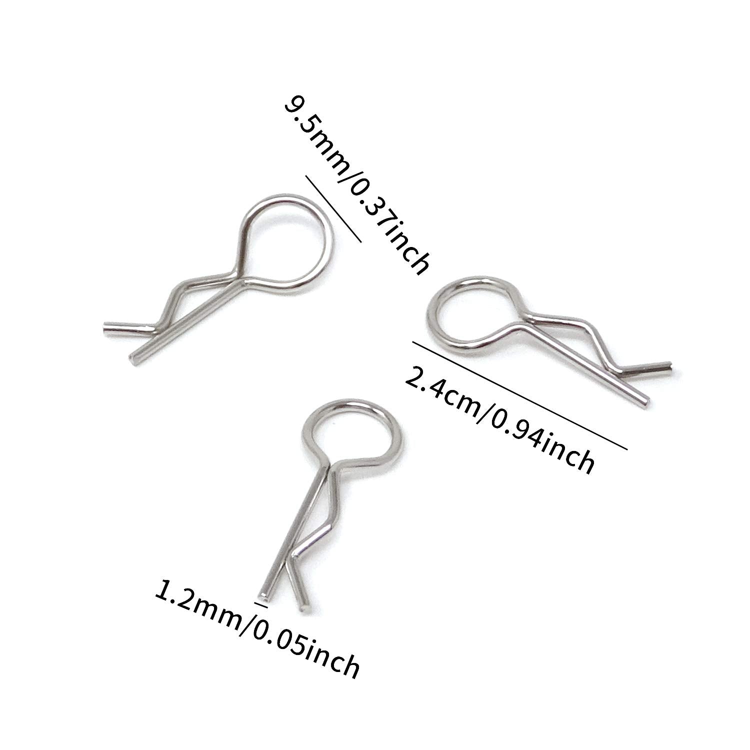 Material: Metal Color: silver Capacity: 52.5g/1.85ounce Size : 2.4*0.95cm/0.94*0.37inch High quality Enough quantity Easy to hold and use Get in and out easily and they still stay put while the car is in operation Suitable for body posts, wings and battery racks of model cars