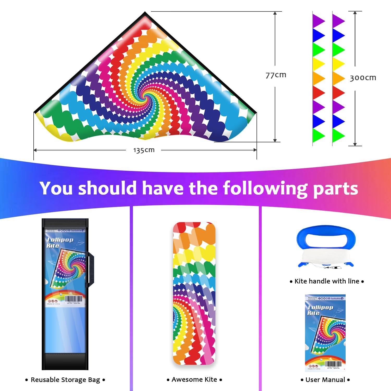 Honbo Lollipop Kite For Adults And Kids,Easy Flyer Large Kite With 2X11.5Ft Detachable Tails, The Easiest Single Line Beach Kite