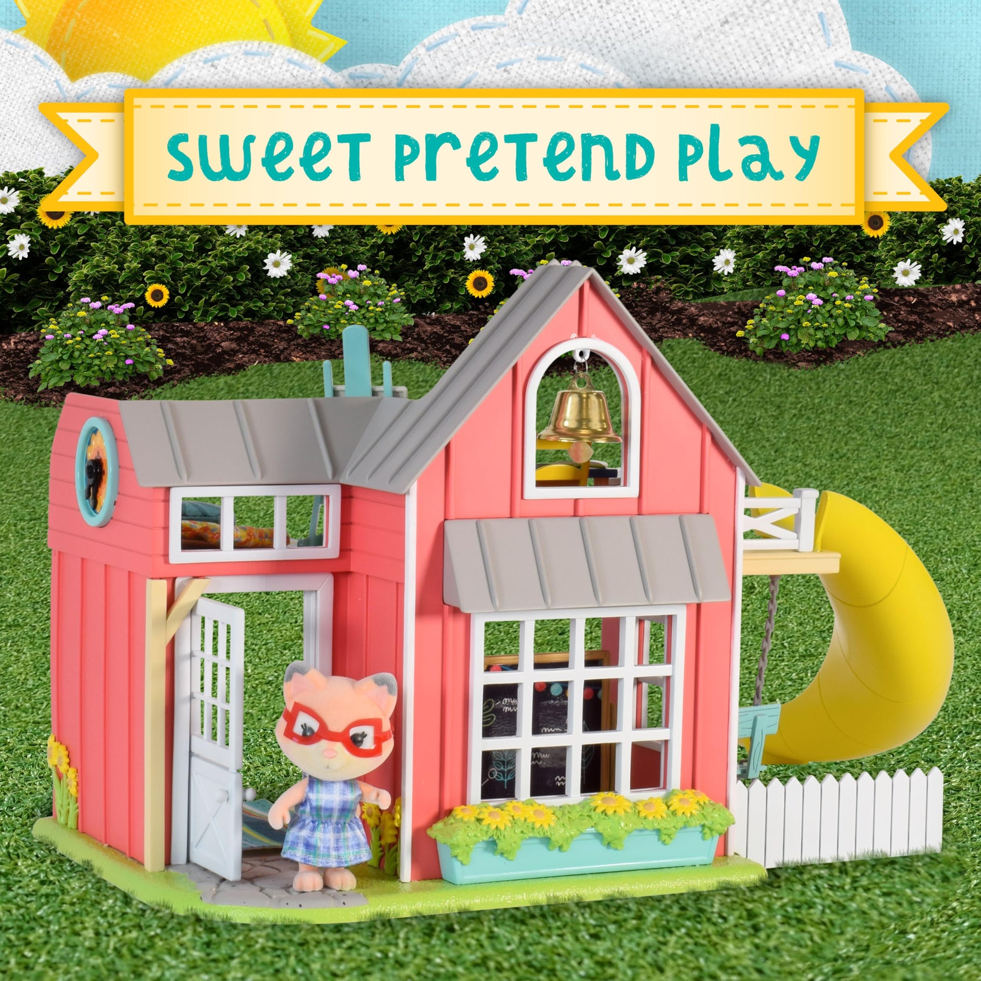 Welcome To Honey Bee Acres Dollhouses, Playsets, And Figures Where The Pretend Play Is Sweet, And The Product Detail Is Fresh And Colorful! The School Bells Ringing So Dont Be Late! The Sunshine Meadow School Is Ready For Another Full Day And Miss Amber Is Excited For Her Students To Begin! Miss Amber Is A Poseable Flocked Figure And Welcomes Her Students To Take Their Seats At Their Desks. She Will Use The Spinning Globe To Talk About The World, And Then Teaches Music And Art Classes In The Afternoon. For Those Students Who Love Recess, There Is The Working Swing And The Slide In The Playground! Come Visit And Make Every Day A Special Day In Honey Bee Acres!