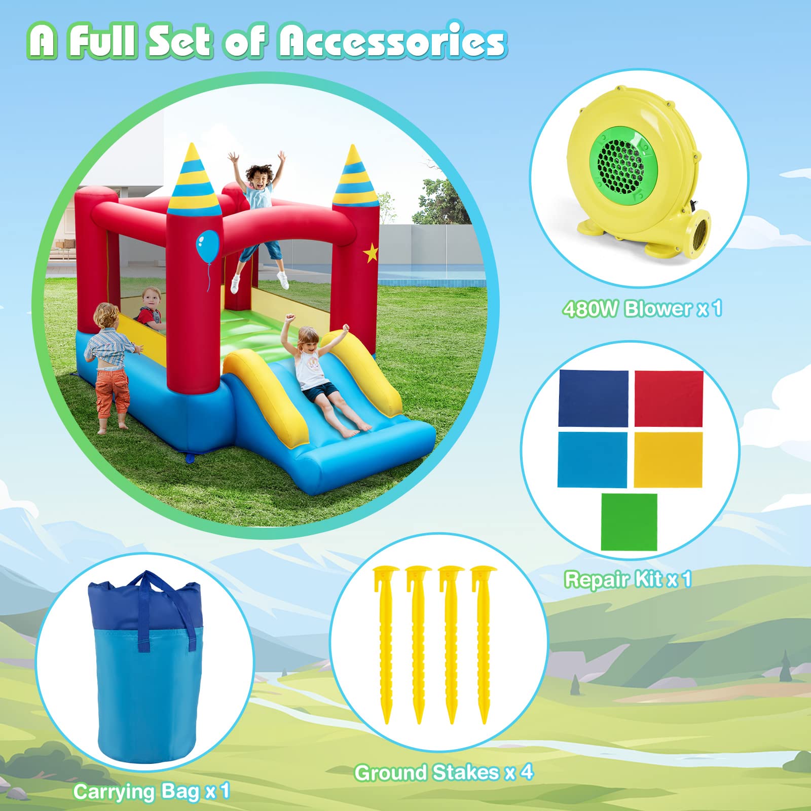 HONEY JOY Inflatable Bounce House Jumping Castle with Slide Oxford Carrying Bag Basketball Rim Air Bouncer for Kids Indoor Outdoor Play (with 480W Blower)