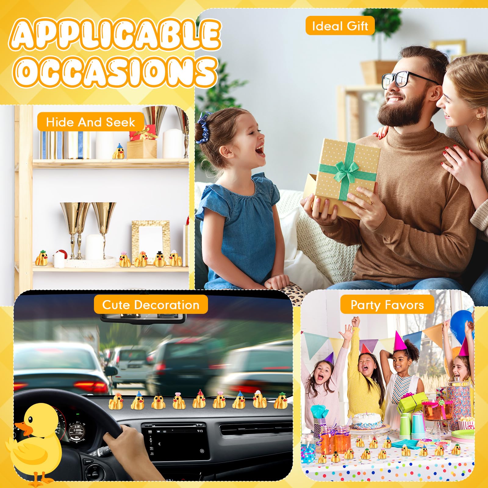 Features: 3D printed small animal duck set Unique design: 3D duck plus mechanical design makes the image more vivid and interesting, creating a mysterious and unparalleled atmosphere. Made from quality, non-toxic materials, these figurines are safe for children and adults, providing long-lasting entertainment and stress relief. Specifications: Material: PLA material Color: multicolor Size: 5 cm/ 1.97 inches Package includes: 1 Piece for each of the 12 pictures, 12 pieces in total Notes: Manual measurement, please allow slight errors on size. The color may exist a slight difference due to different screen displays.