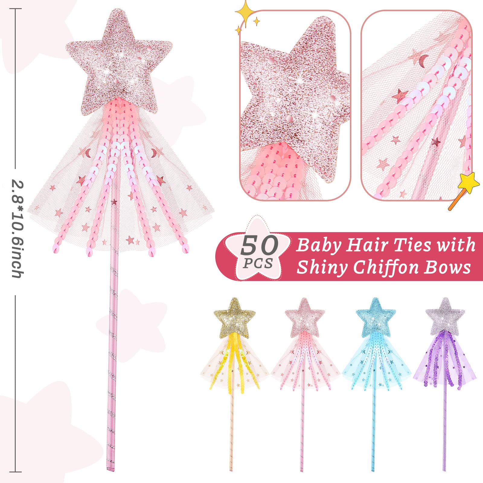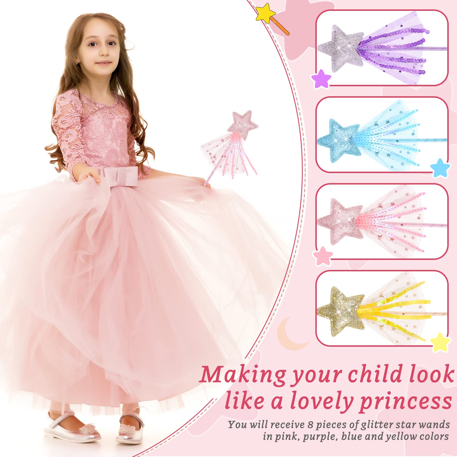 Honoson Glitter Star Magic Wand Princess Wand Fairy Wand Angel Star Wand Stick with Ribbon for Girl Kid Birthday Wedding Princes