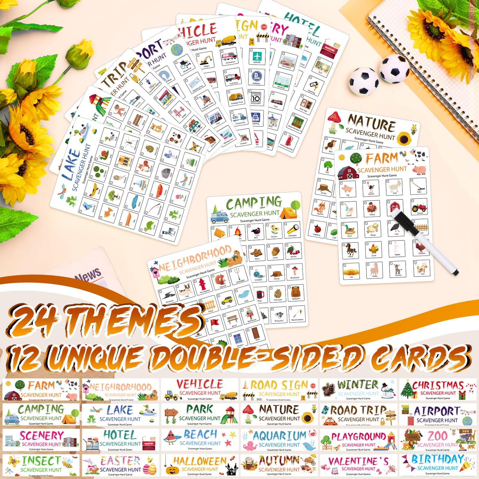 Hoolerry 12 Pcs Scavenger Hunt For Kids 24 Themed Scavenger Hunt Cards Nature Camping Road Trip Vehicle Birthday Valentines Game