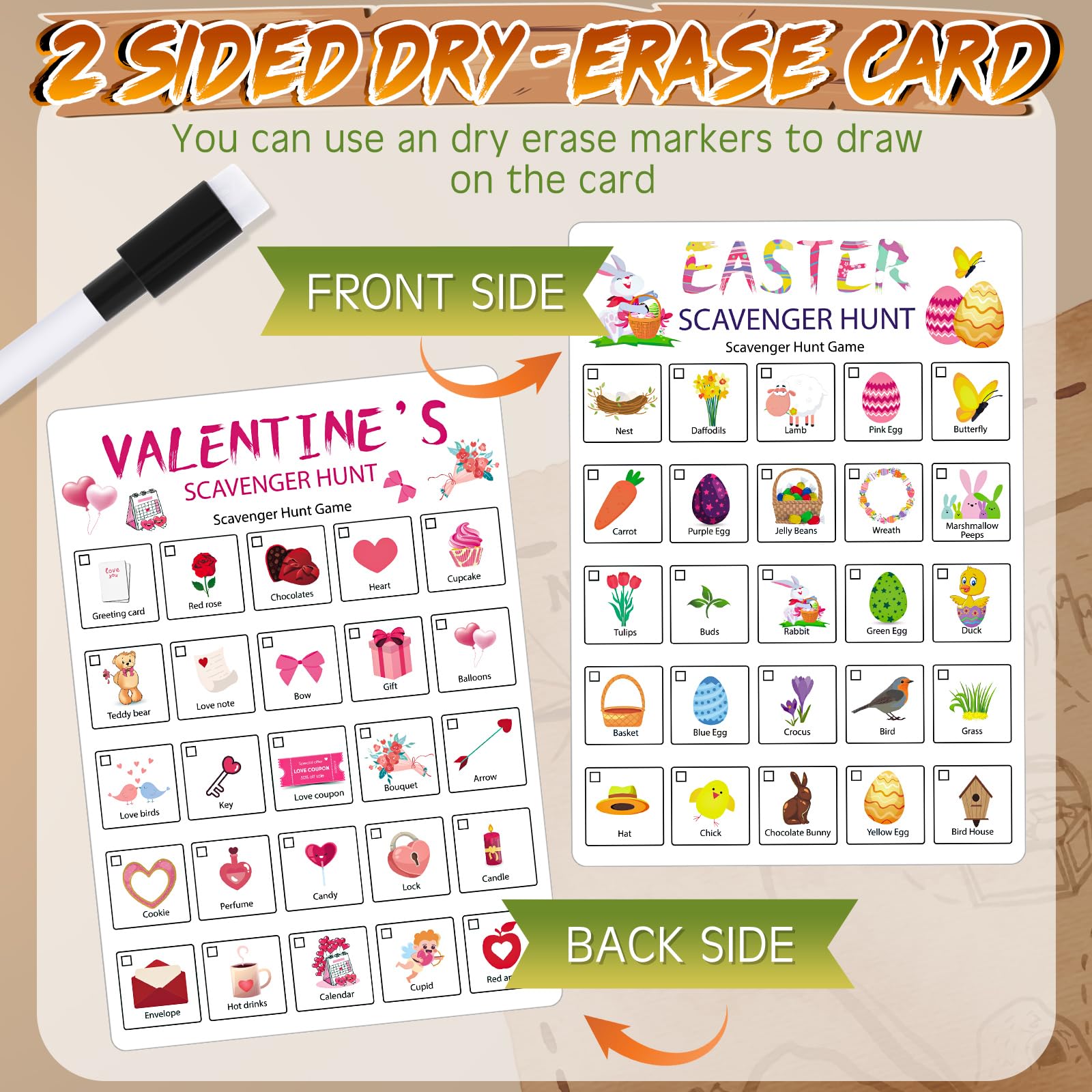 Features: Scavenger hunts offer a variety of advantages, making them a popular choice for entertainment, education, team building, and even personal development. Scavenger hunts provide opportunities for social interaction and bonding among participants. Whether it's with friends, family, or colleagues, it's a fun way to spend time together and strengthen relationships. Depending on the theme or context of the scavenger hunt, participants can learn new things about a particular area, topic, or historical event. This makes scavenger hunts not only entertaining but also educational. Specifications: Material: paper Package includes: 12 x Scavenger hunts cards 1 x Marker Notes: Manual measurement, please allow slight errors on size. The color may exist a slight difference due to different screen displays.