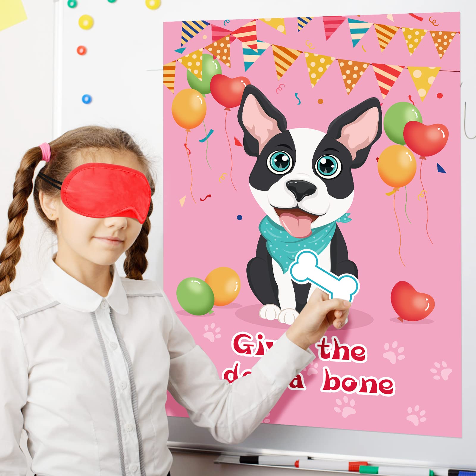 Pin The Bone On The Dog Game Dog Themed Birthday Party Favors Give The Dog A Bone Pink Puppy Birthday Party Supplies For Kids Girls Party Games, Large Dog Poster With 48 Bone Stickers