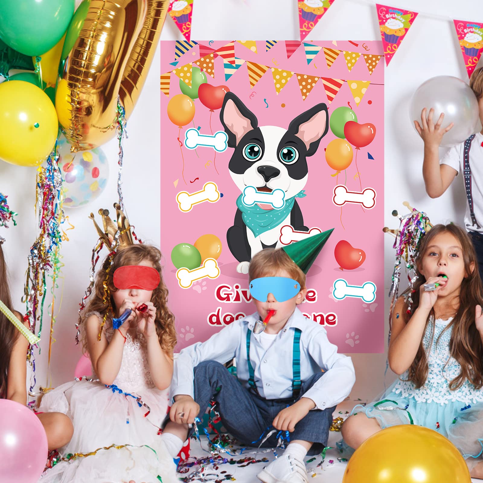 Hooqict Pin The Bone On The Dog Party Game For Kids Birthday Party Games Dog Themed Birthday Supplies Puppy Party Favors For Boys Girls, Large Pin The Tail Poster With 48 Bone Stickers