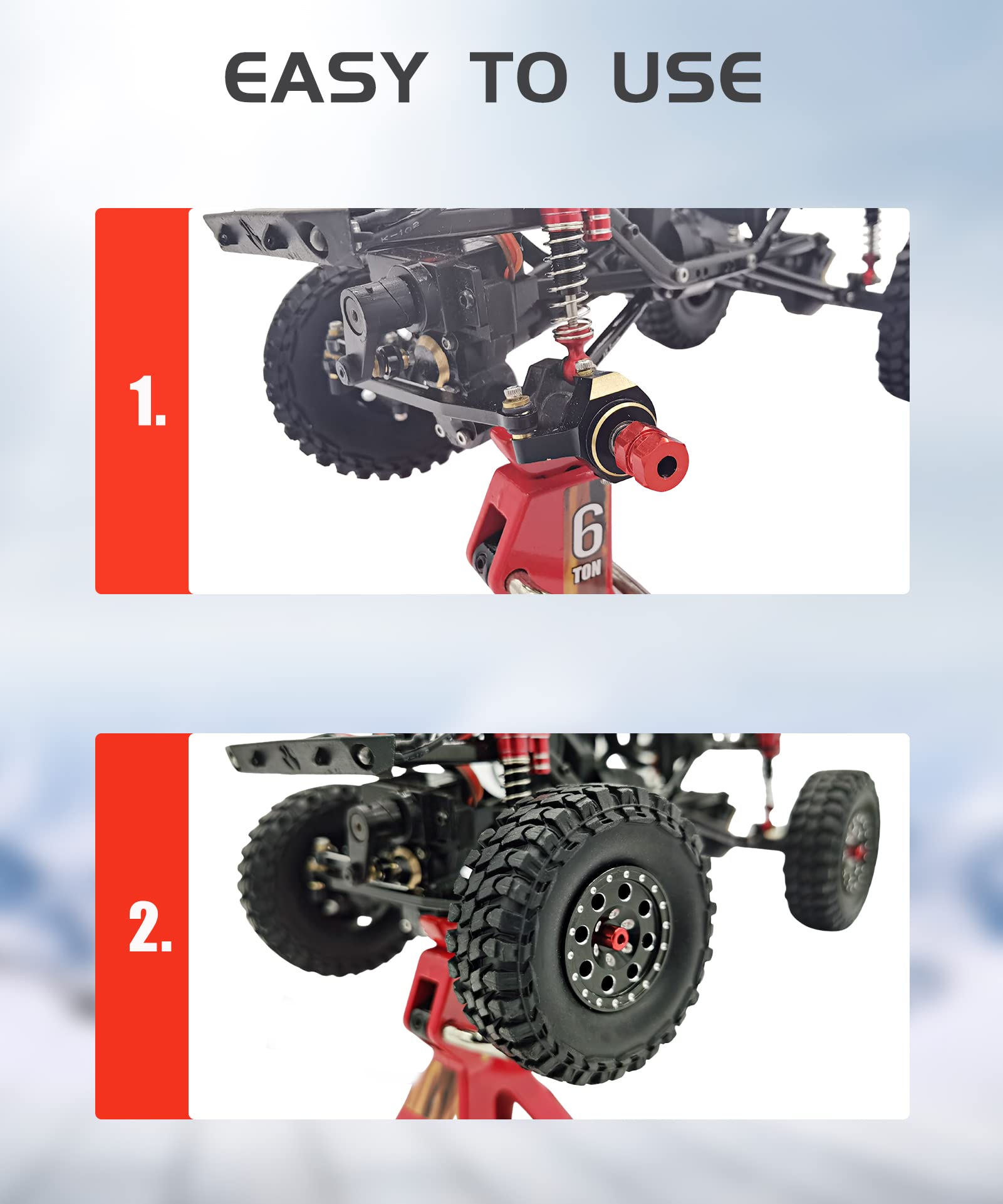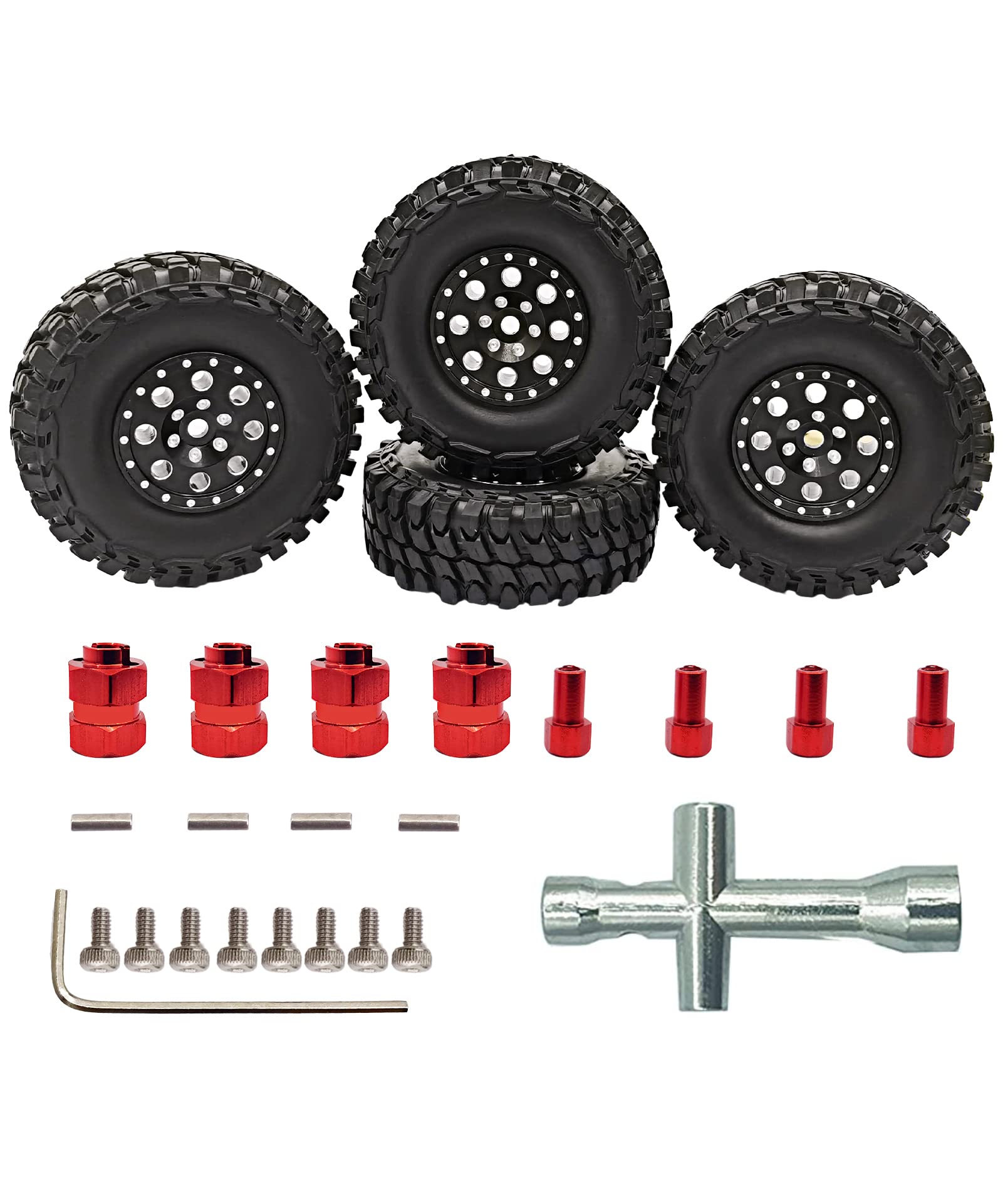 View compareHOPLEX Beadlock Wheels and Tires 4Pcs Metal Micro Crawler Tires with Red 7mm RC Wheel Hex Hub Spacer for Axial SCX24 90081 1/24
