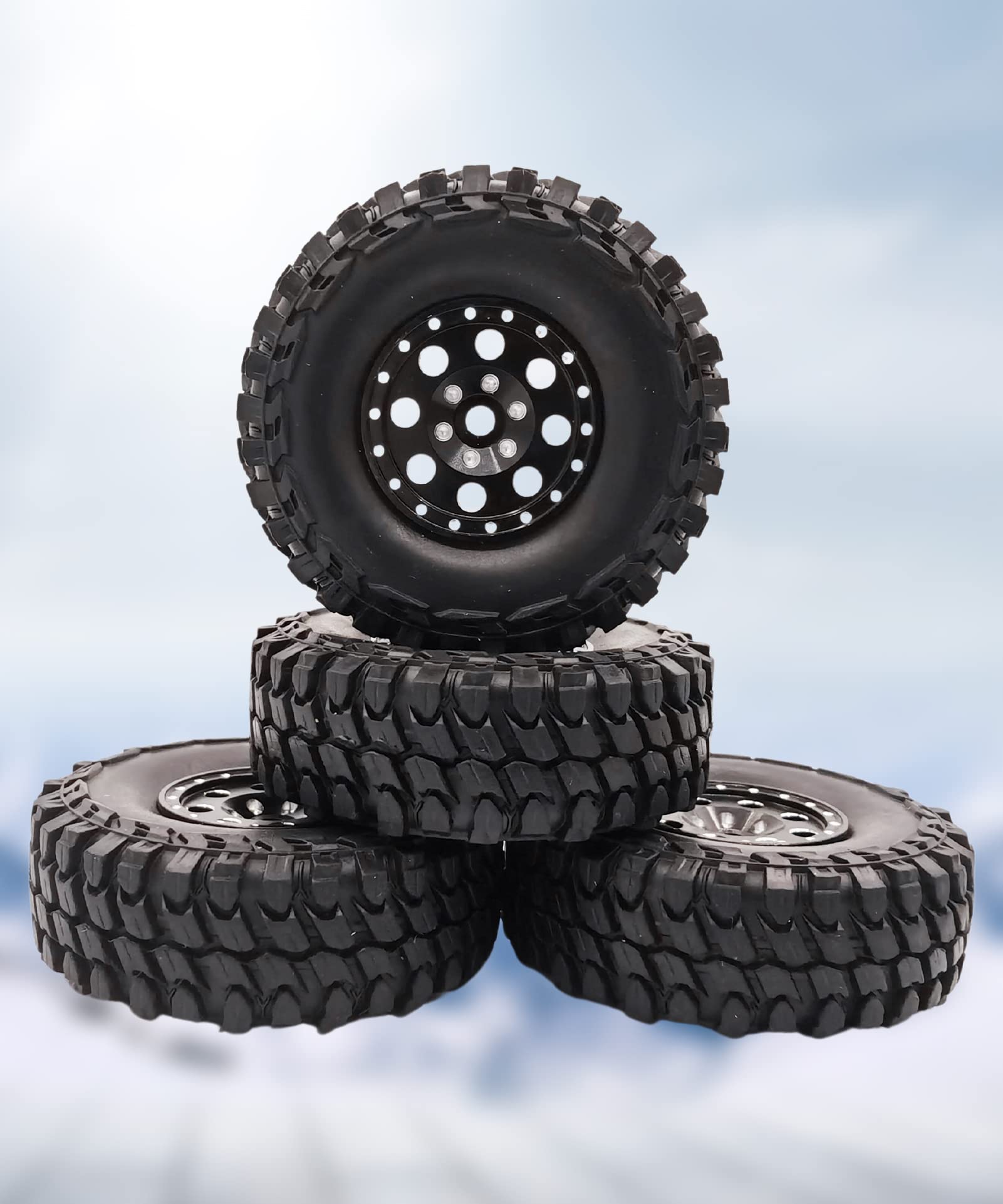 ?Application For?The tires design for Axial SCX24 90081 1/24 rc crawler car only(Don't fit for C10 model) | ?High Quality?Made of high-quality soft rubber and aluminum alloy, increase the tires and wheels durability, wear-resistant, practical | ?Special Design?Upgrade to 9.39g metal loop, providing strong support and excellent running balance than others | ?Excellent Performance?The tires adopt stepped blocks & multiple sipes, provide unmatched grip, ensure stable and flexible driving | ?Package List?4*rubber rc tires and accessories, also come with a cross wrench tool for easier disassembling and installation