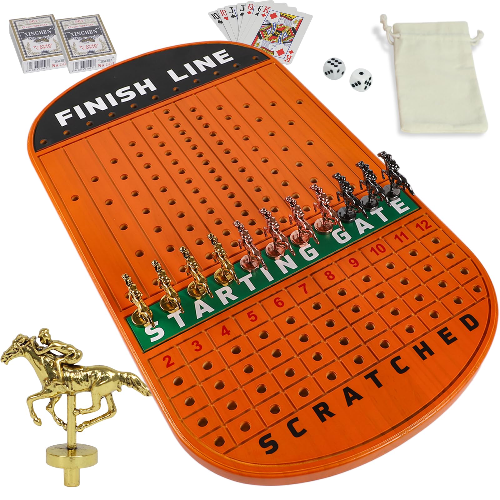 Horow Large 21 Inches Horse Racing Board Game Thicken Wood Horse Race Card And Dice Board Game Luxury Edition Set With 11 Metal