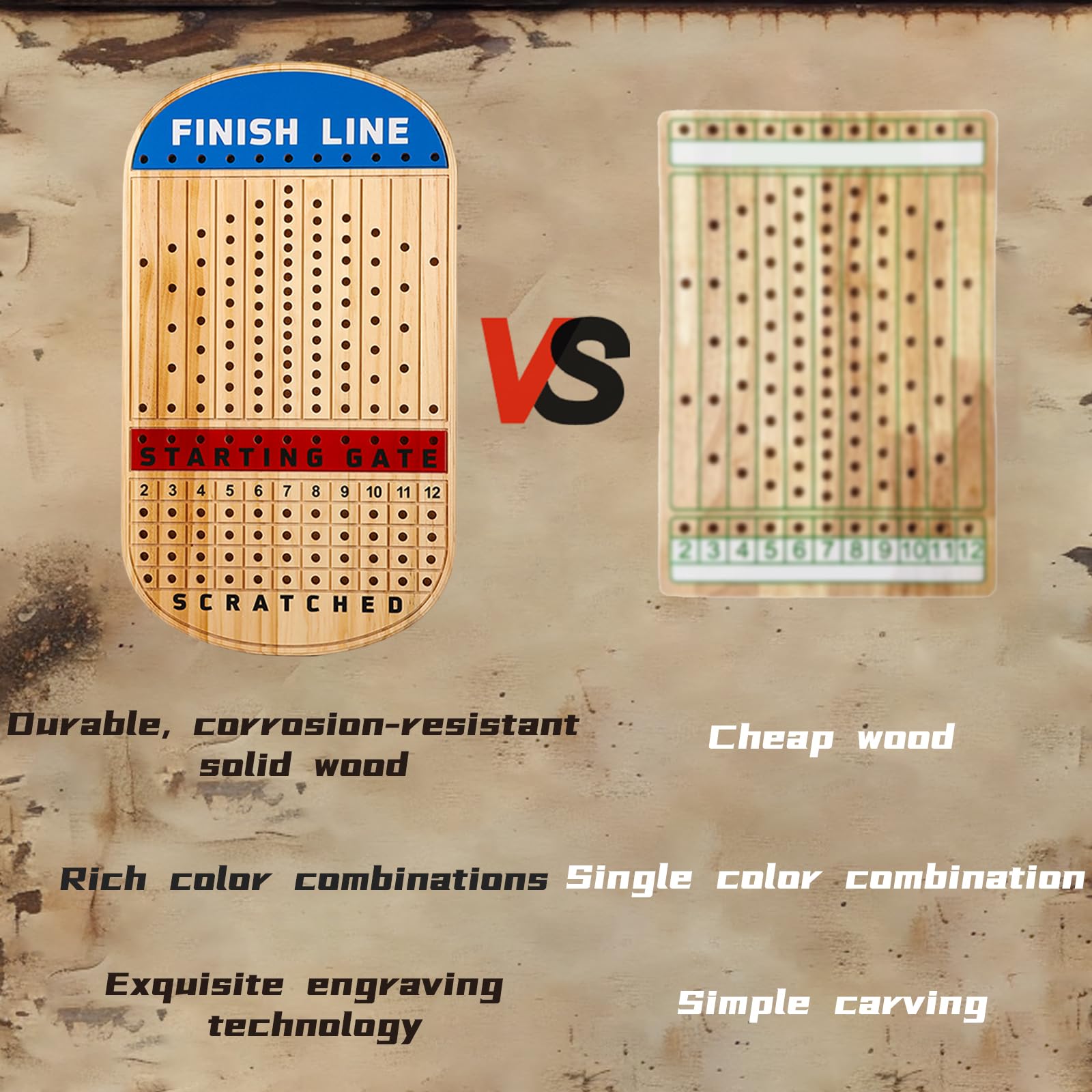- Q: What materials are used in the construction of the game? A: This horse racing board game is made from high-quality materials, featuring metal horses instead of plastic, which adds a heavy and artistic touch. The wooden game board is crafted for durability and is coated with a waterproof layer to prevent deformation and corrosion.