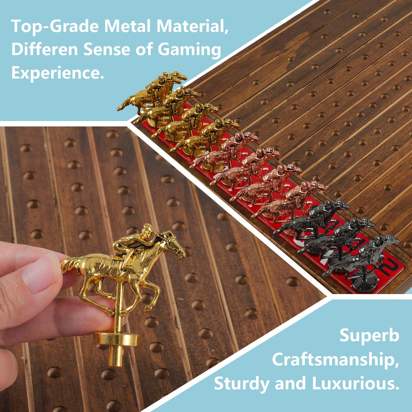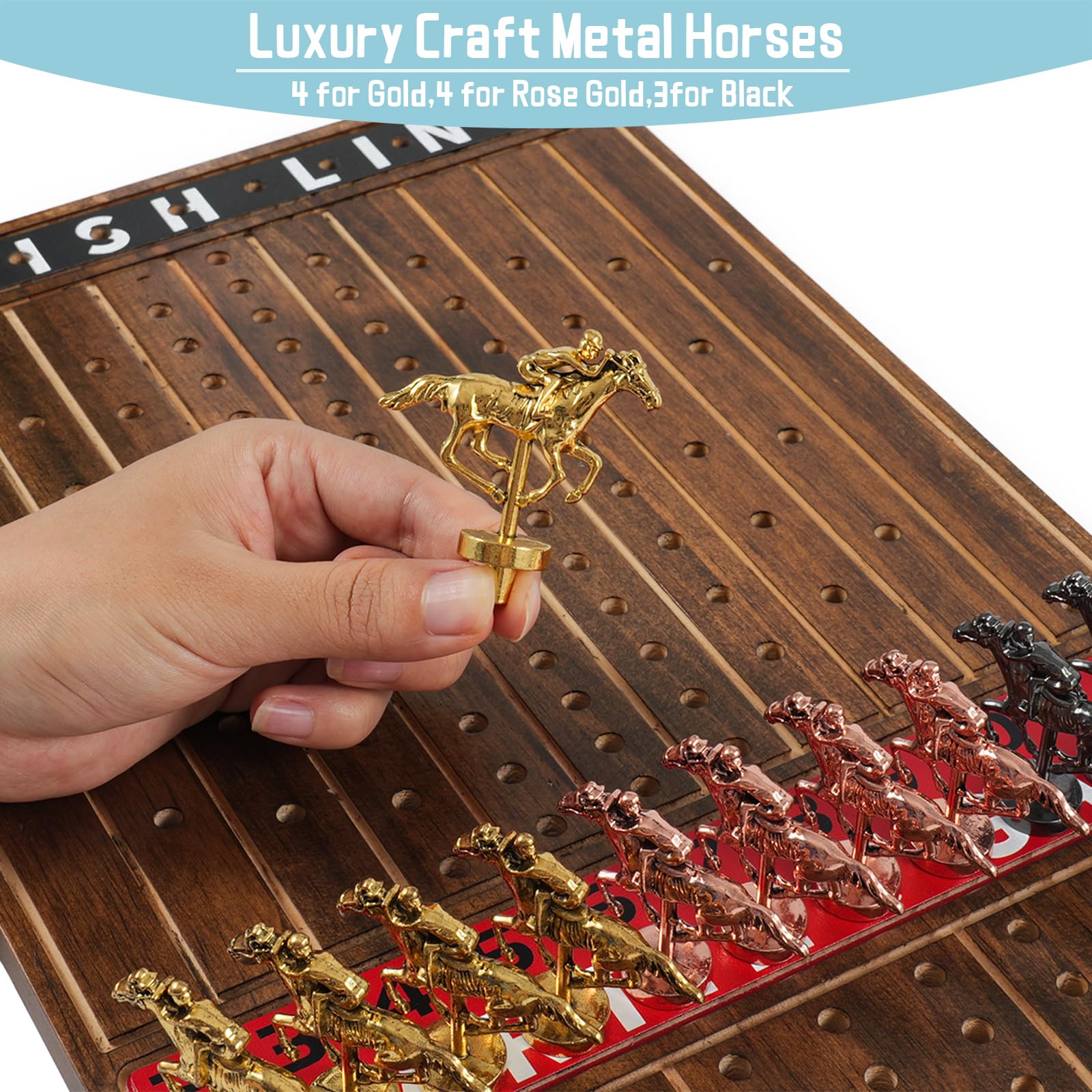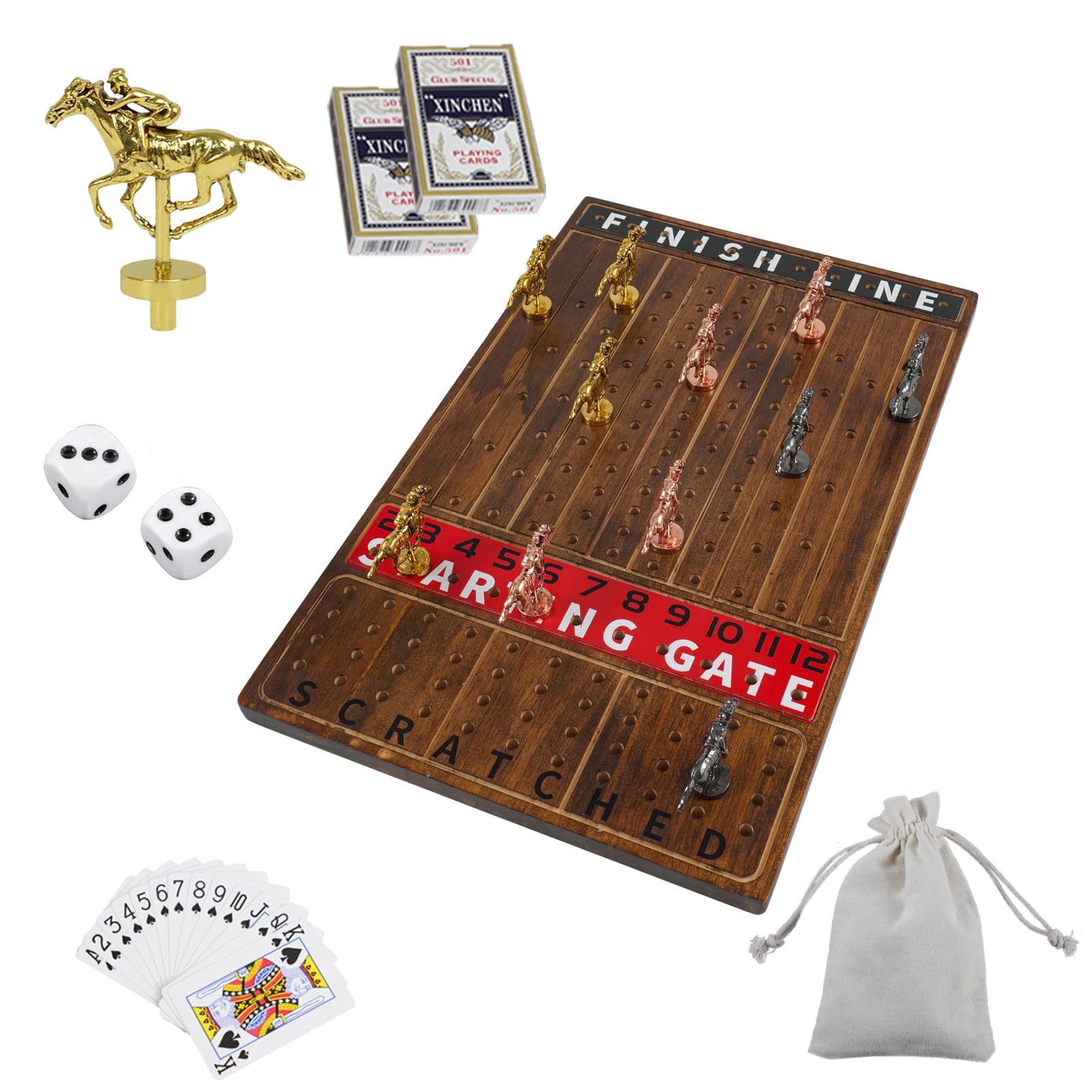 Horse Racing Board Game Comes With 11 Luxurious Metal Horses,2 Dice And 2 Boxes Of Cards Solid Wood Horse Racing Board Color Box