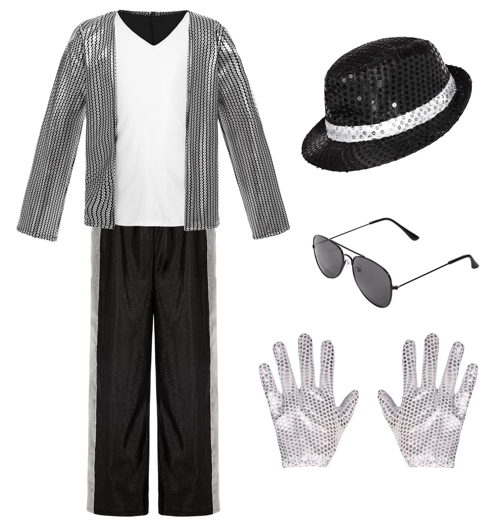 View compareHORTYZON Kids Dance Star Costume Boys 80s Dance Costume 90s Pop Stage Outfits with Glasses Hat Gloves Halloween Cosplay Party (8