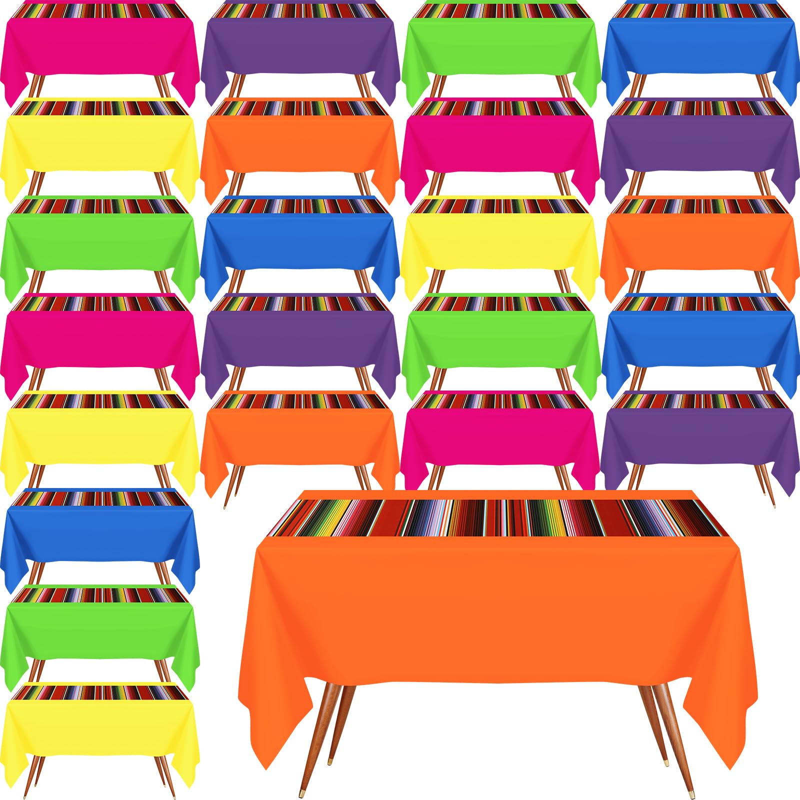 Hosuly Mexican Fiesta Tablecloth 54 X 108'' Party Plastic Tablecloth Striped Table Cover For Mexican Fiesta Party Decorations(Pu
