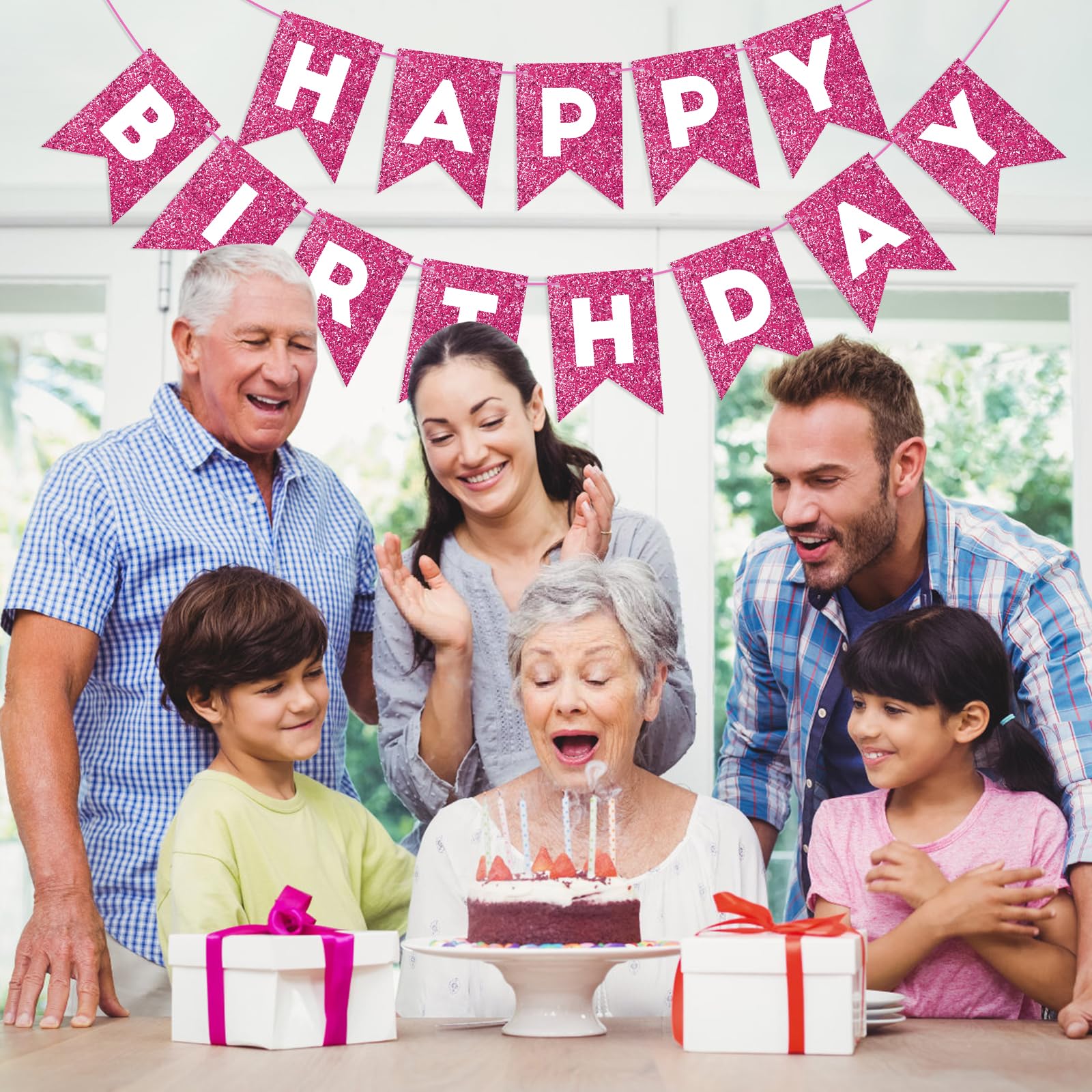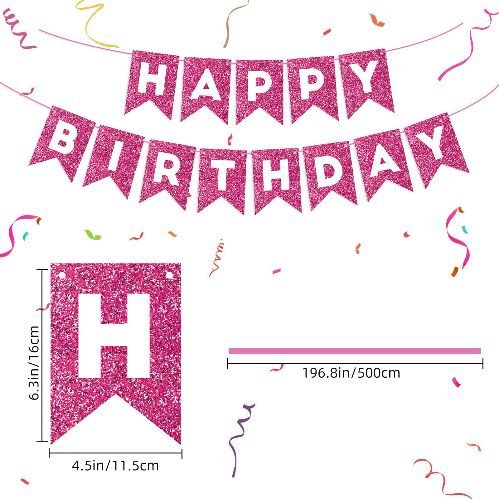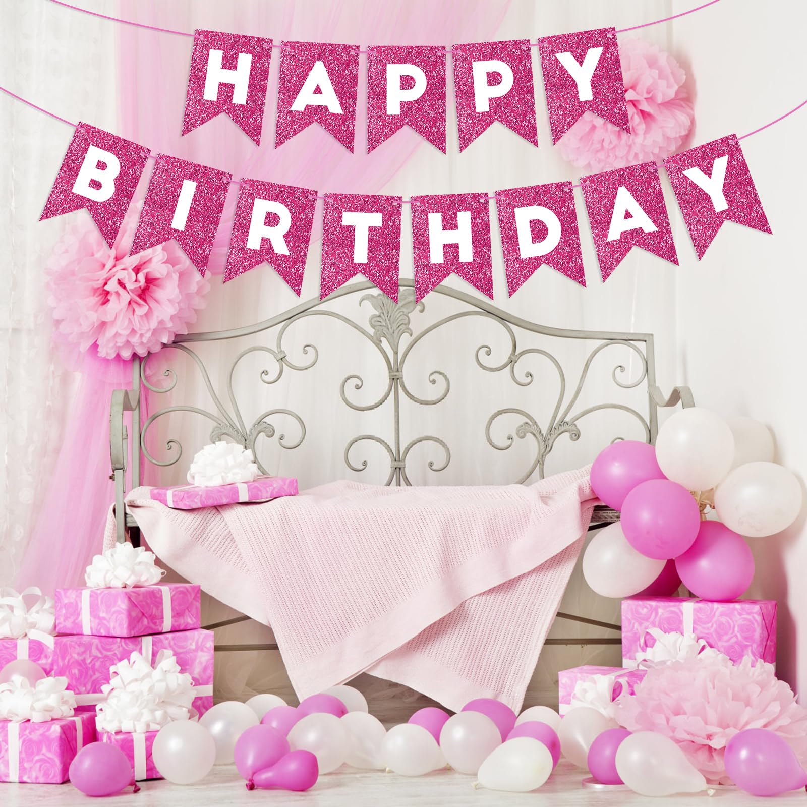 Hot Pink Happy Birthday Banner Birthday Sign For Backdrop Glitter Happy Birthday Decorations For Women Girls Birthday Party Wall Door Garland Bunting Banner Hot Pink Party Supplies