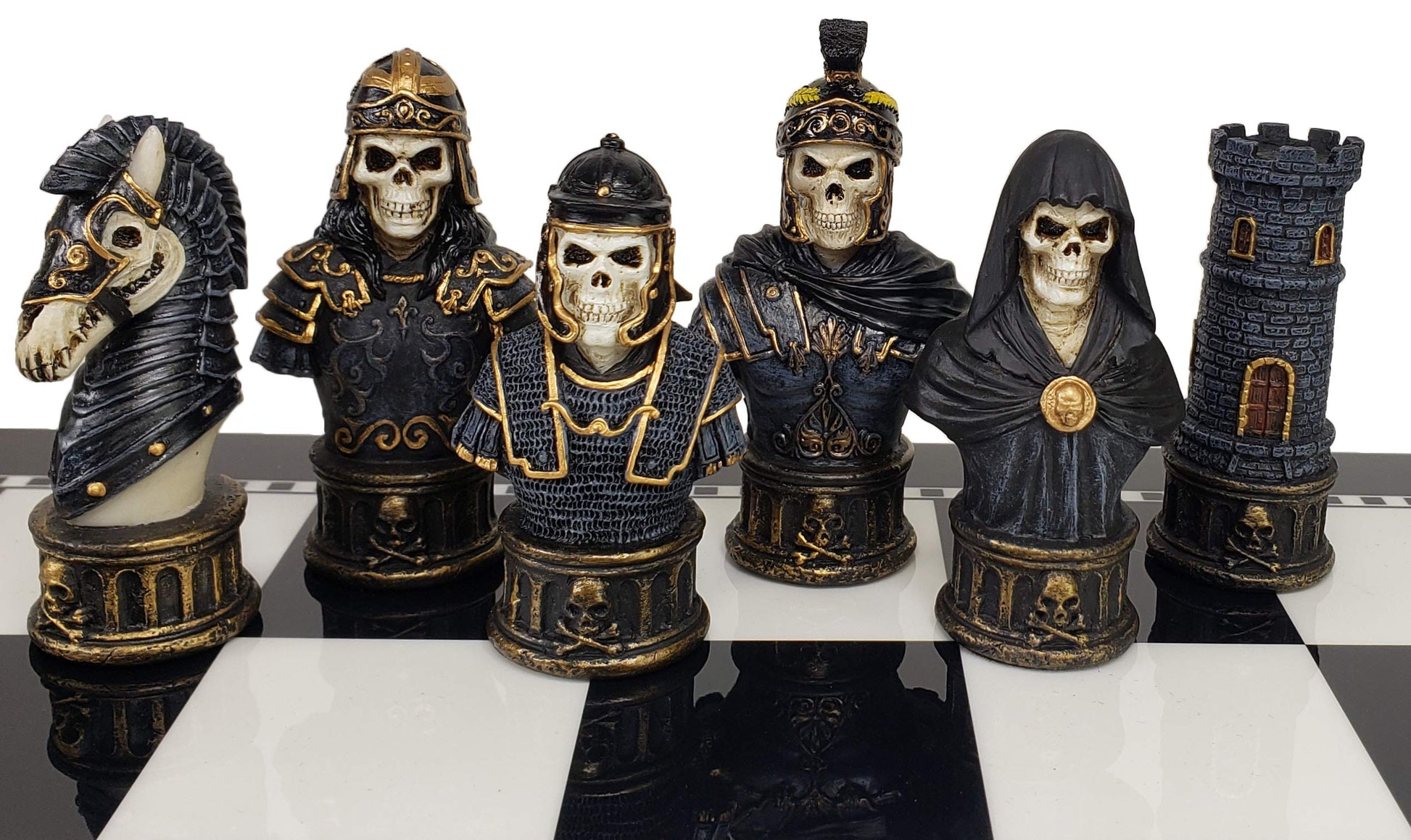 Hpl Medieval Times Skull Busts Gothic Fantasy Skeleton Chess Men Set - No Board