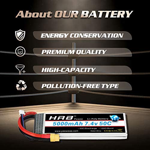 View compareHRB 7.4V 5000mAh 50C XT60 Lipo Battery Compatible with RC Car RC Plane RC Truck RC Boat