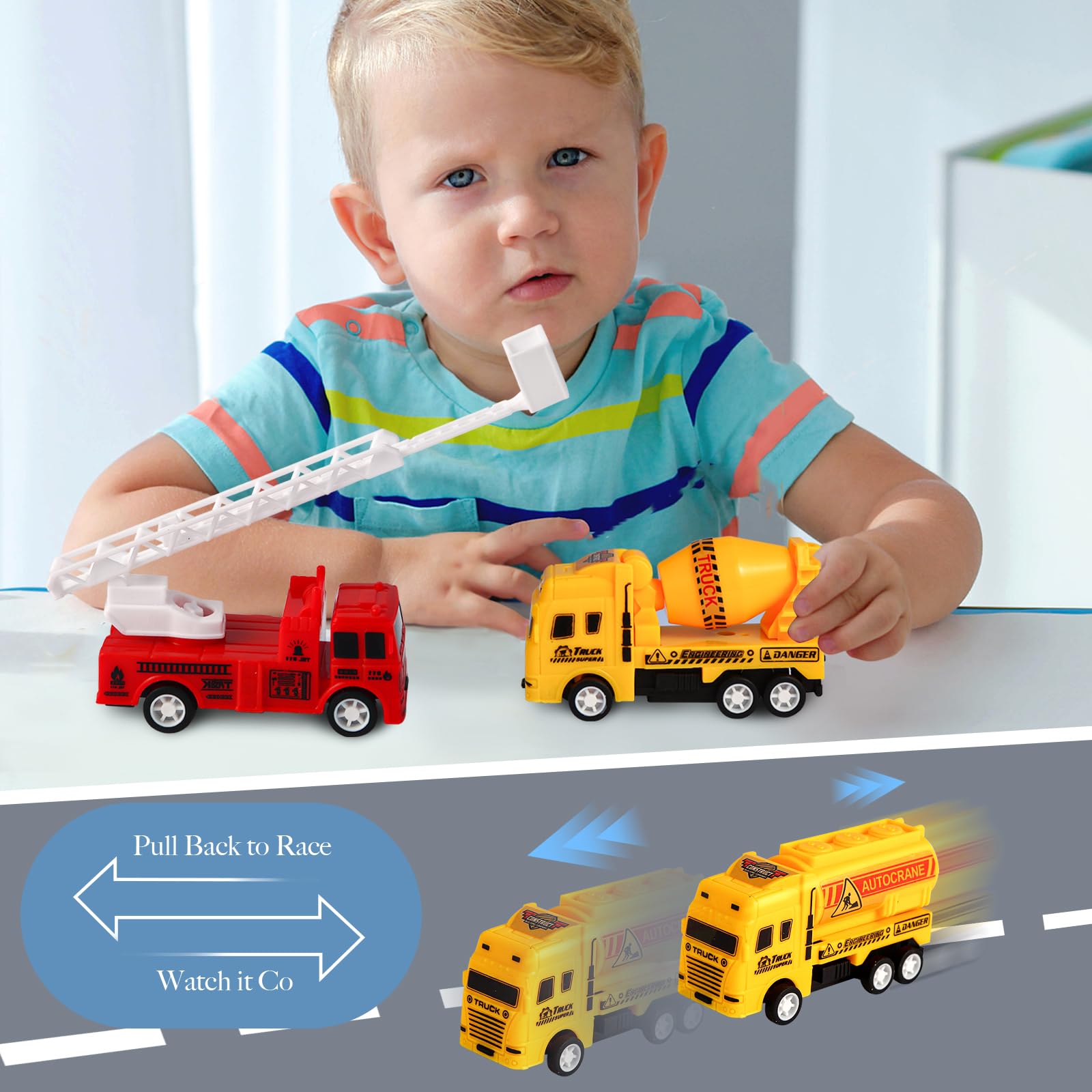 HSMQ 8 Pack Pull Back Cars Vehicle Toys Set, Fire Truck Construction Truck Model for Kids Boys Girls Toddler, Mini Pull Back Veh