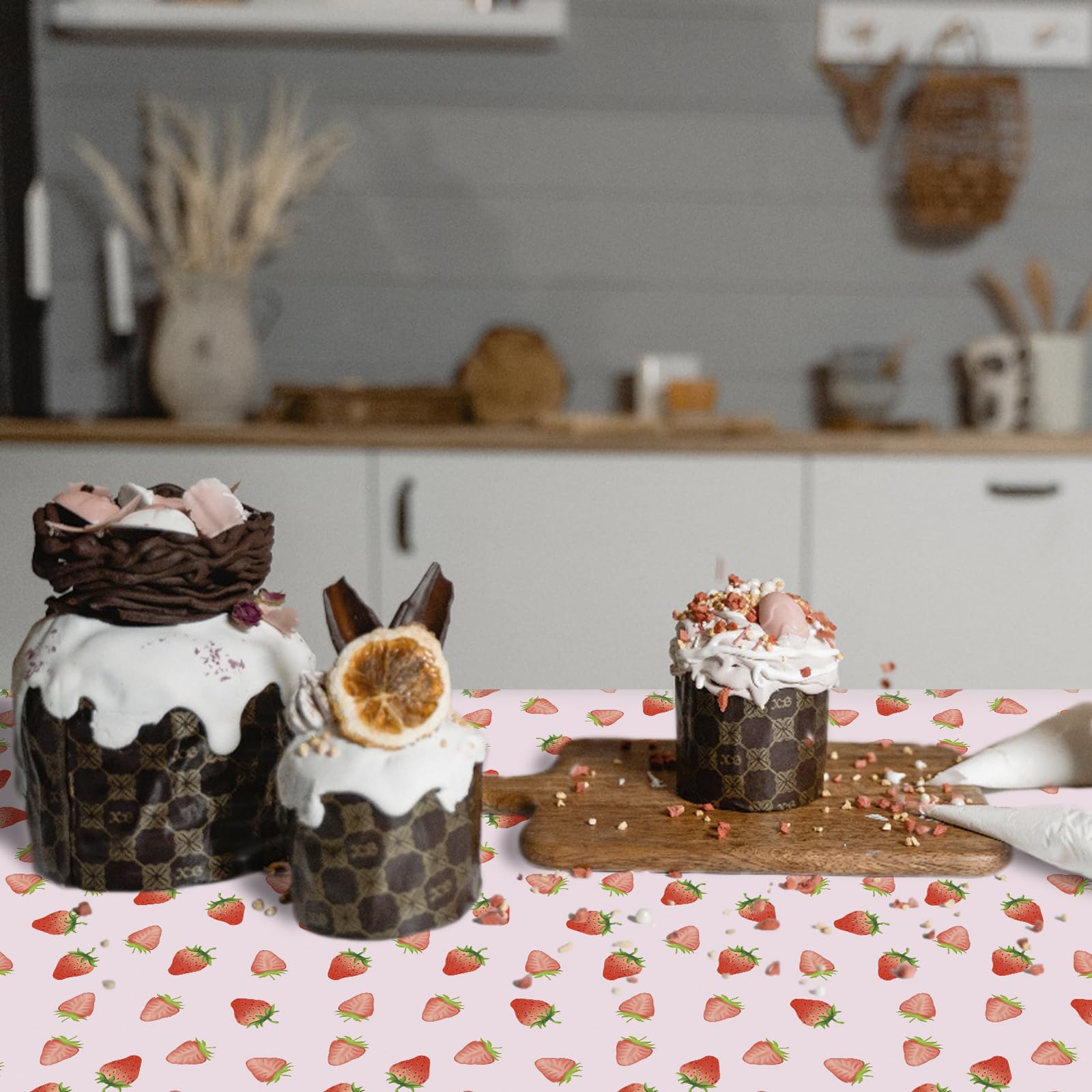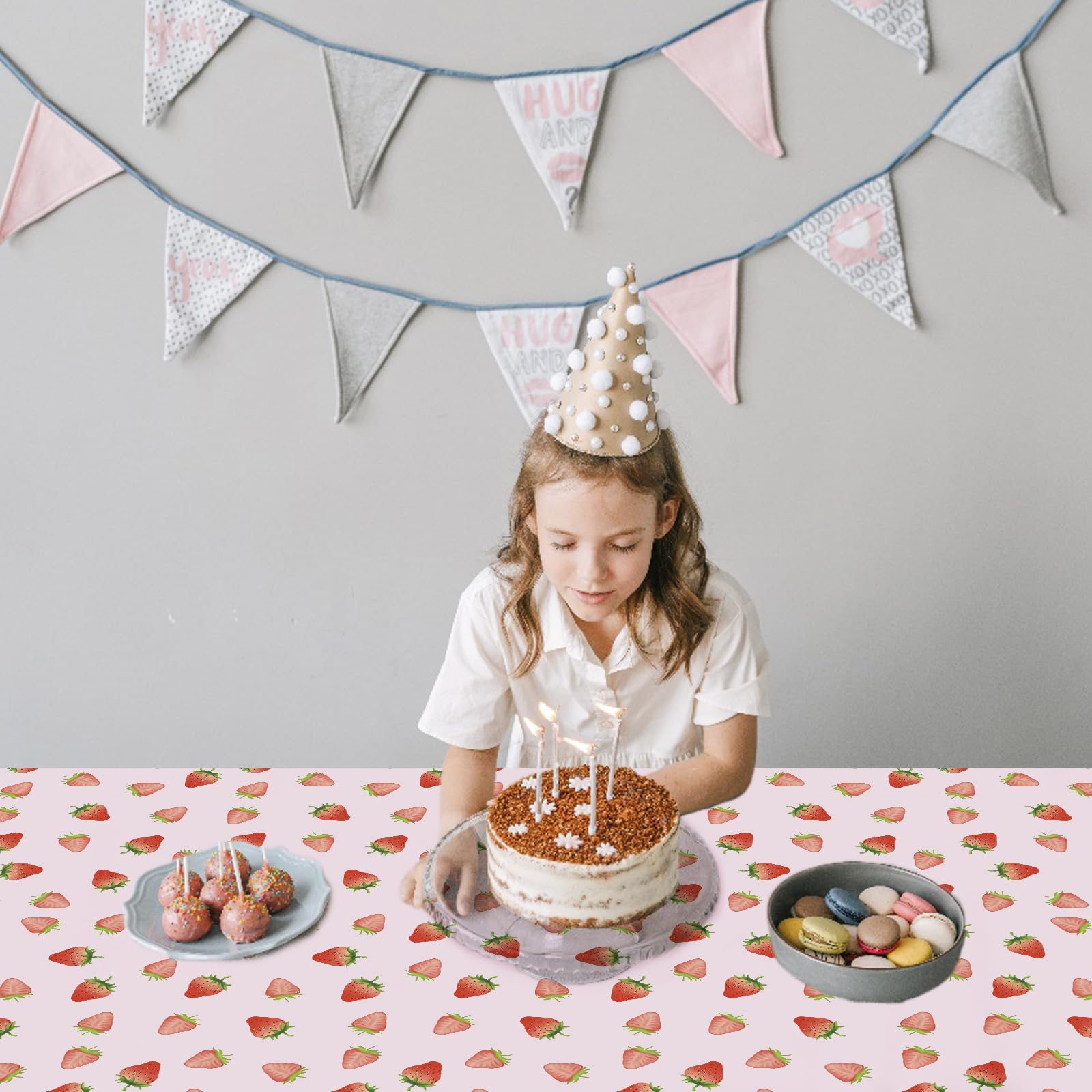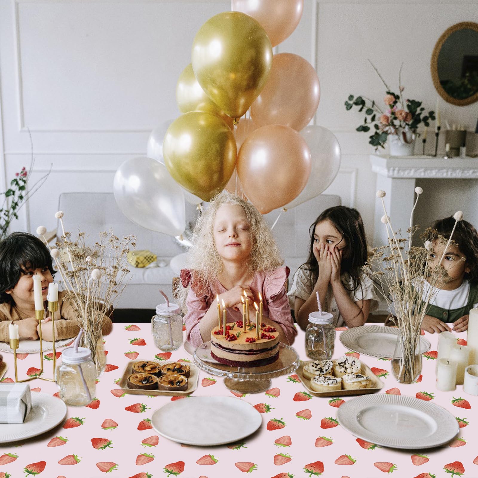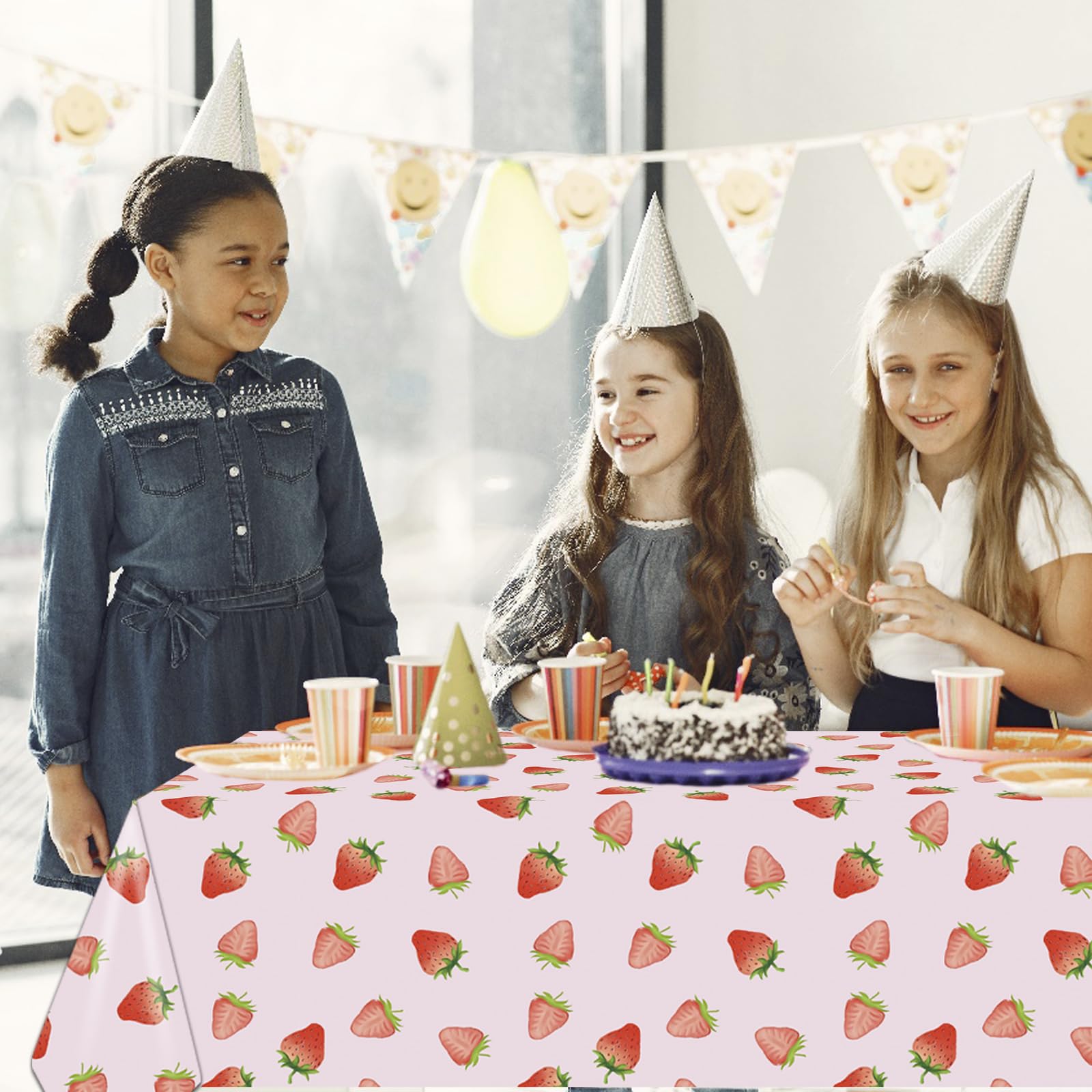 HTONTB 3PCS Strawberry Party Tablecloth,Strawberry Birthday Decorations 54X108INCH Disposable Plastic Rectangle Table Cover for
