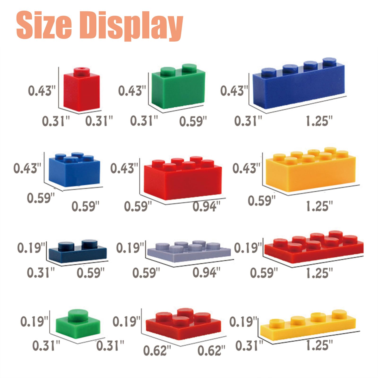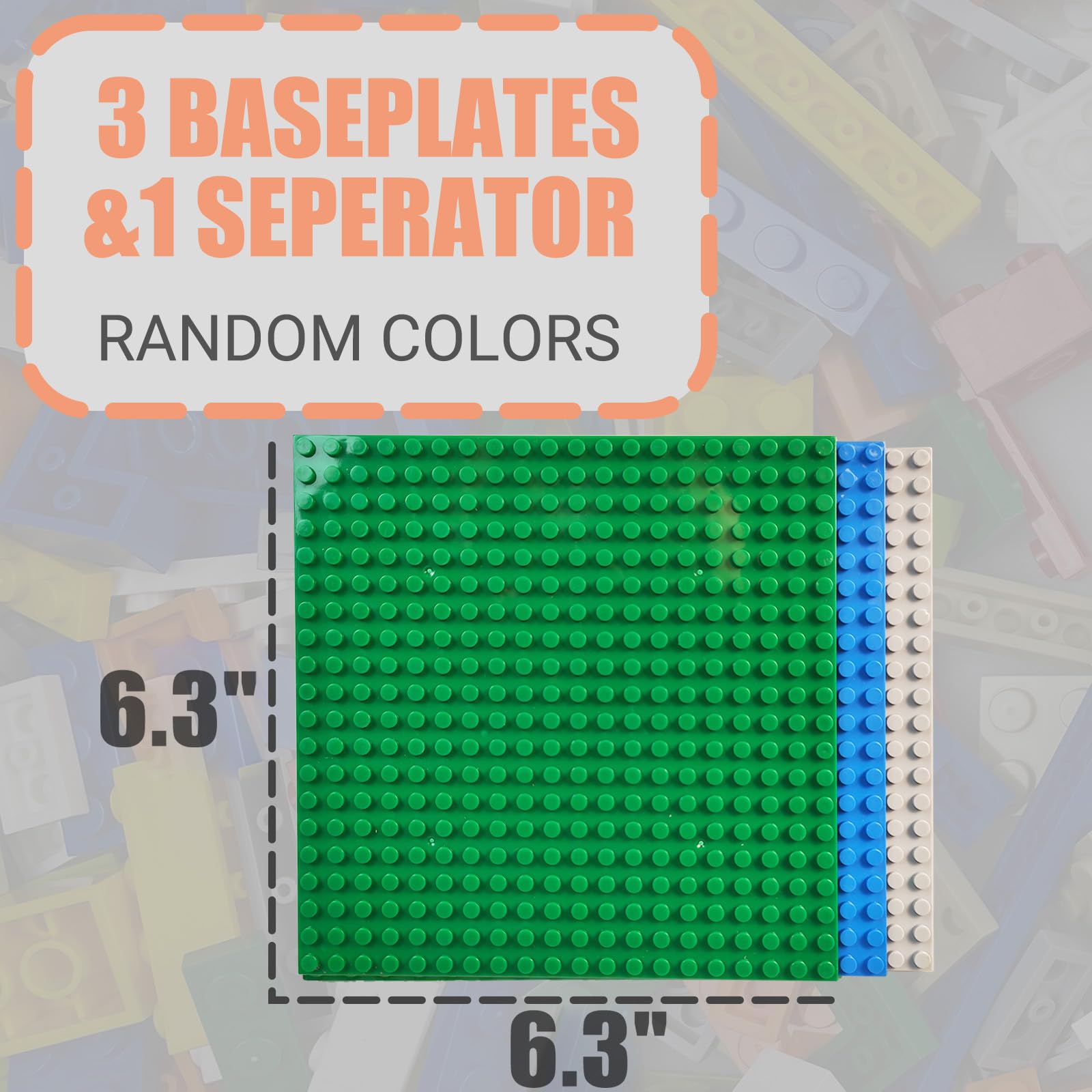 - Q: What sizes are the base plates included in the HUIZDQ building blocks set? A: The HUIZDQ building blocks set includes three stackable base plates, each measuring 6.3 inches by 6.3 inches.