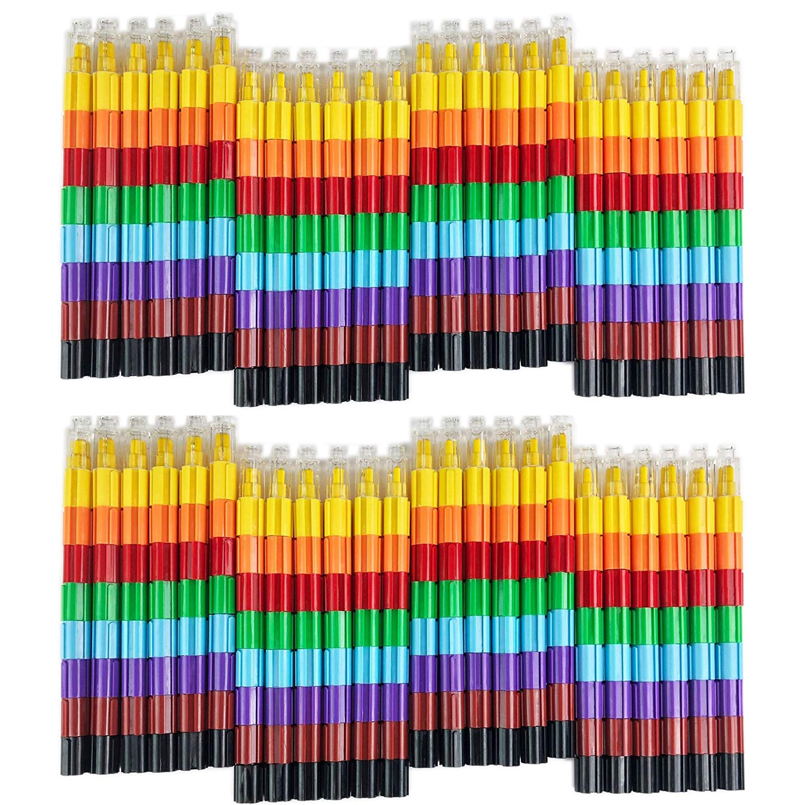 Huji Stacking Buildable 8 Colors Crayons Set, Connect Stack And Build Sideways And Up, Favorite Toys Kids Children Party Favors School Supplies Safe Non-Toxic, Easy To Hold (48)