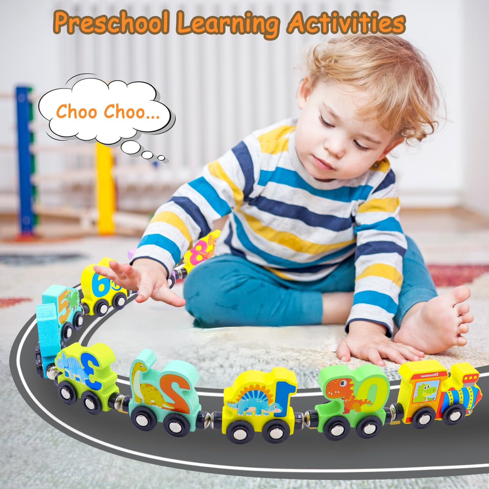 View compareHumerry Dinosaur Toys For Kids 2-4, Wooden Magnetic Train Set, 11 Pcs Number Trains Learning Activities For Kids, Birthday Gifts Infant Development Toys For Boys Girls