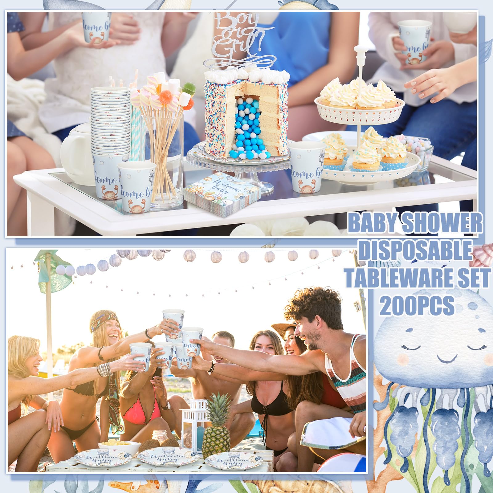 View compareHushee 200 Pcs Under the Sea Baby Shower Paper Plates Napkins Cups Baby Shower Party Supplies Tableware Set Disposable Cup Napki