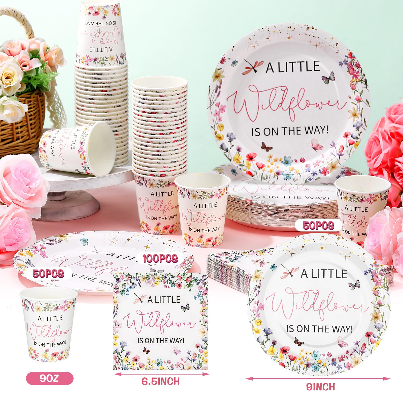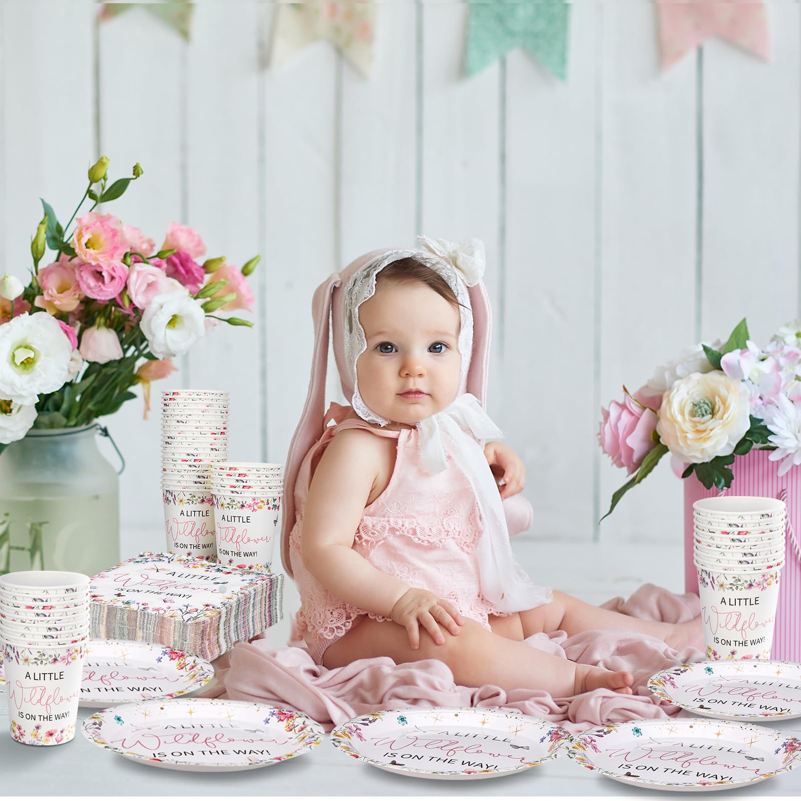 Hushee 200 Pcs Wildflower Baby Shower Paper Plates Napkins Cups Baby Shower Party Supplies Tableware Set A Little Wildflower Is