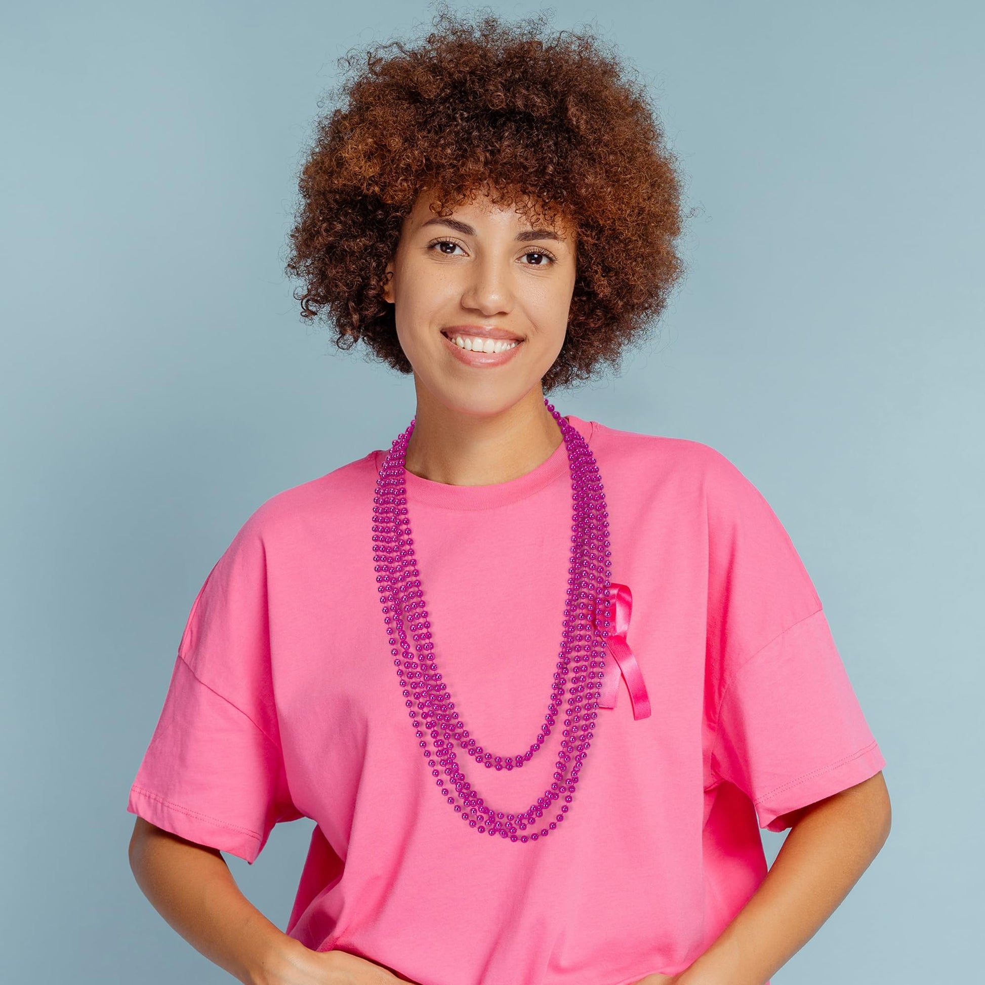 View compareHuskein 12 Pcs Rosered Beads Necklaces, Breast Cancer Awareness Accessories, 33'' Mardi Gras Beads Bulk, Round Christmas Necklac