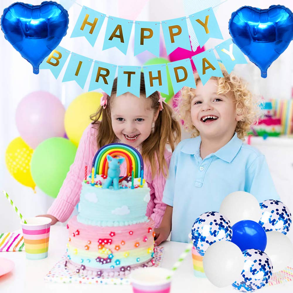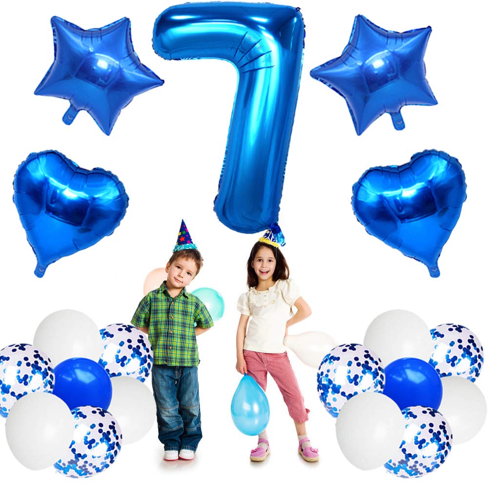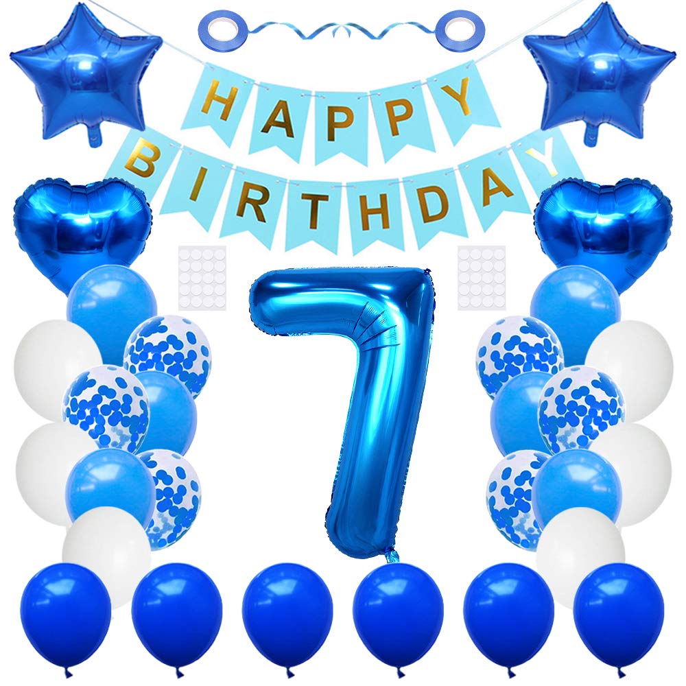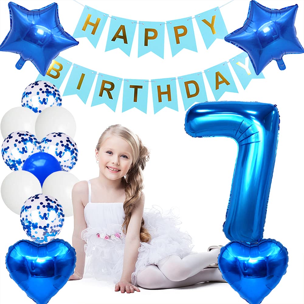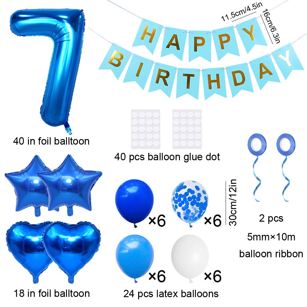 Huture 7 Birthday Party Supplies Blue Number 7 Foil Balloon Happy Birthday Banner Kit 7Th Birthday Decoration White Blue Latex C