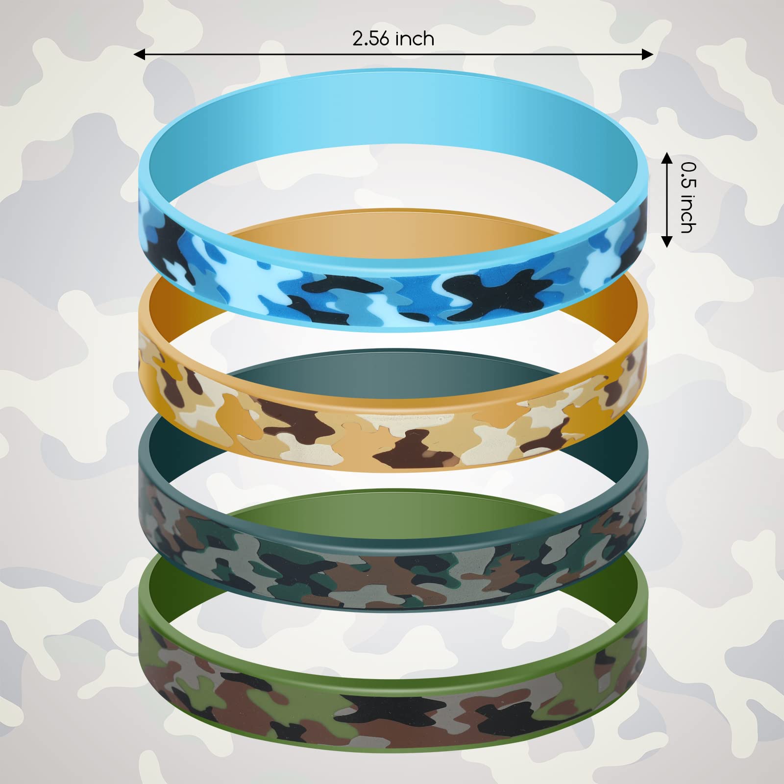HyDren 24 Packs Camouflage Rubber Bracelets Camouflage Military Assorted Wristbands Green