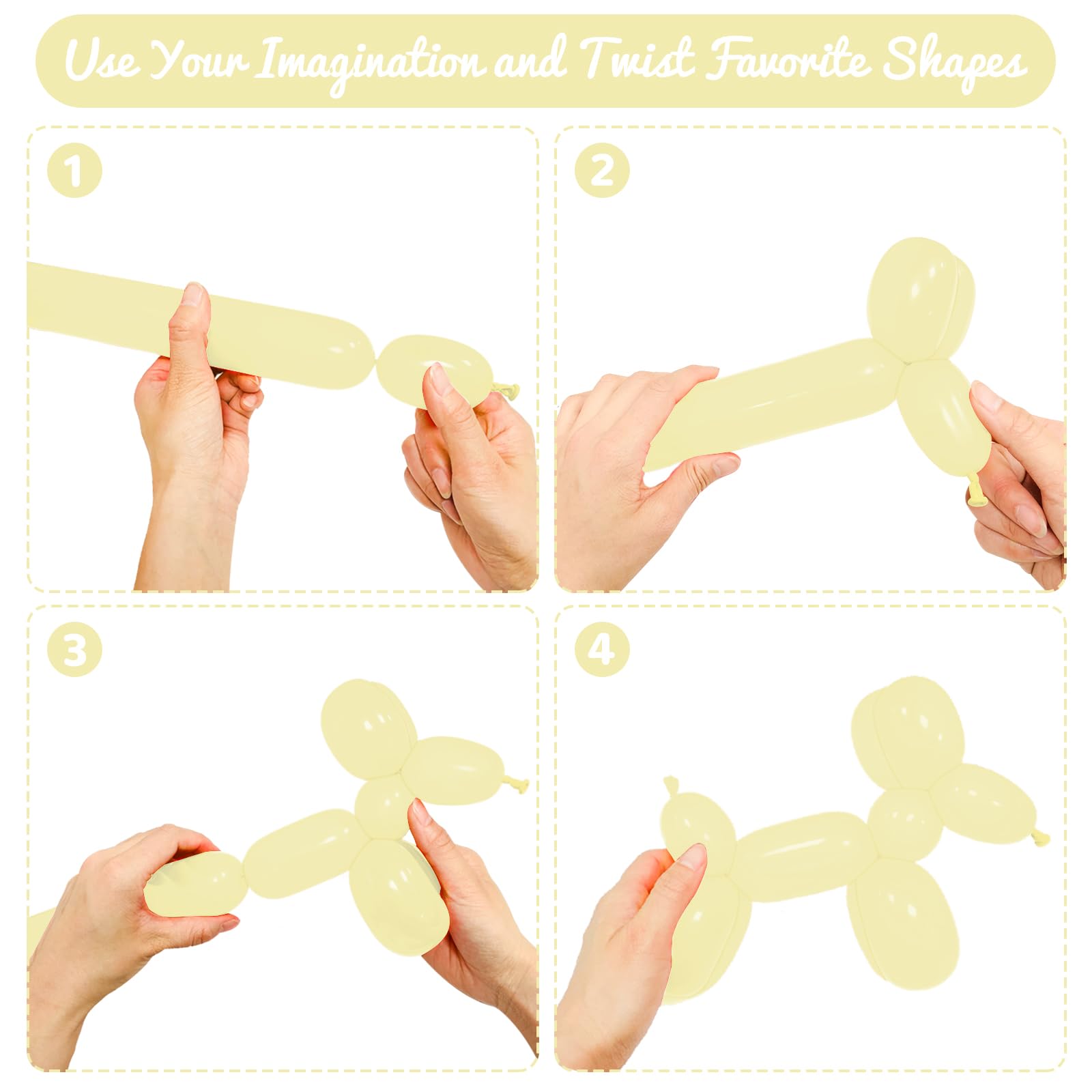 Hykjnbw Yellow Long Balloons For Balloon Animals, 260 Pastel Balloons Art Kit For Twisting, Skinny Modeling Balloons Supplies Fo